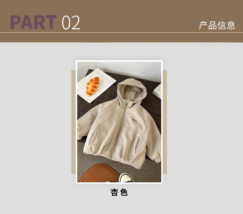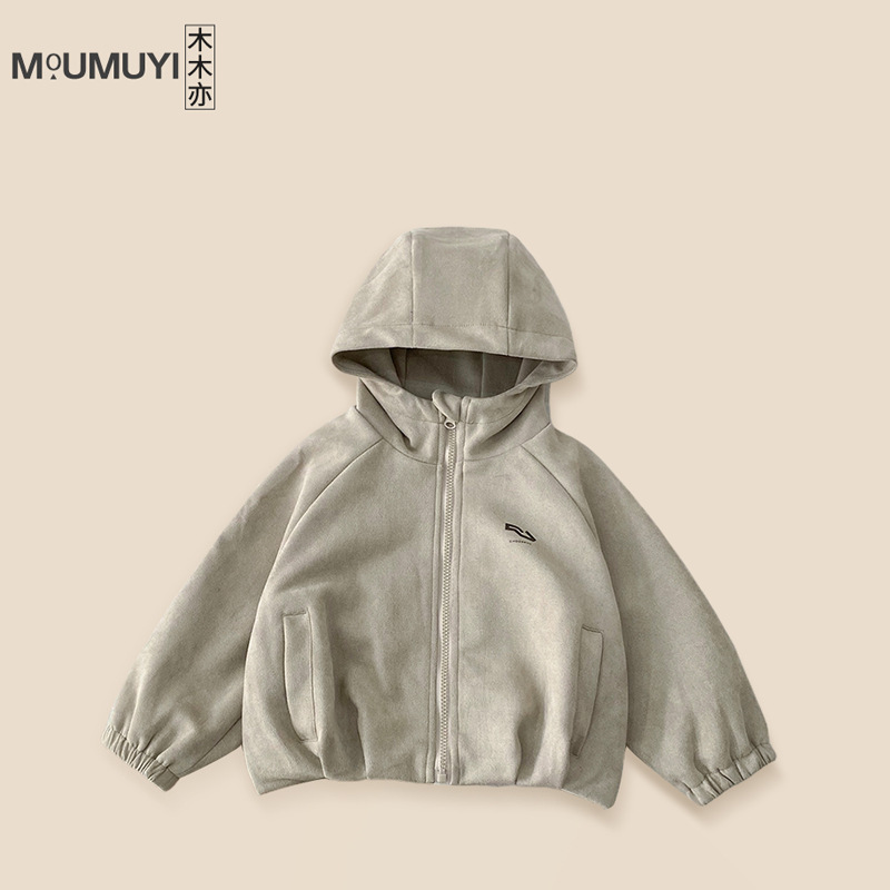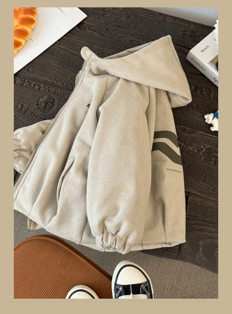 어린이 소년 스웨이드 후드 레터 두꺼운 자켓 2024 가을과 겨울 새로운 한국 스타일 아기 코튼 탑 지퍼