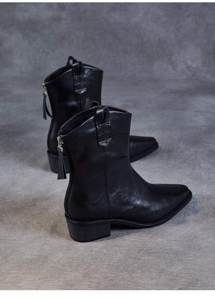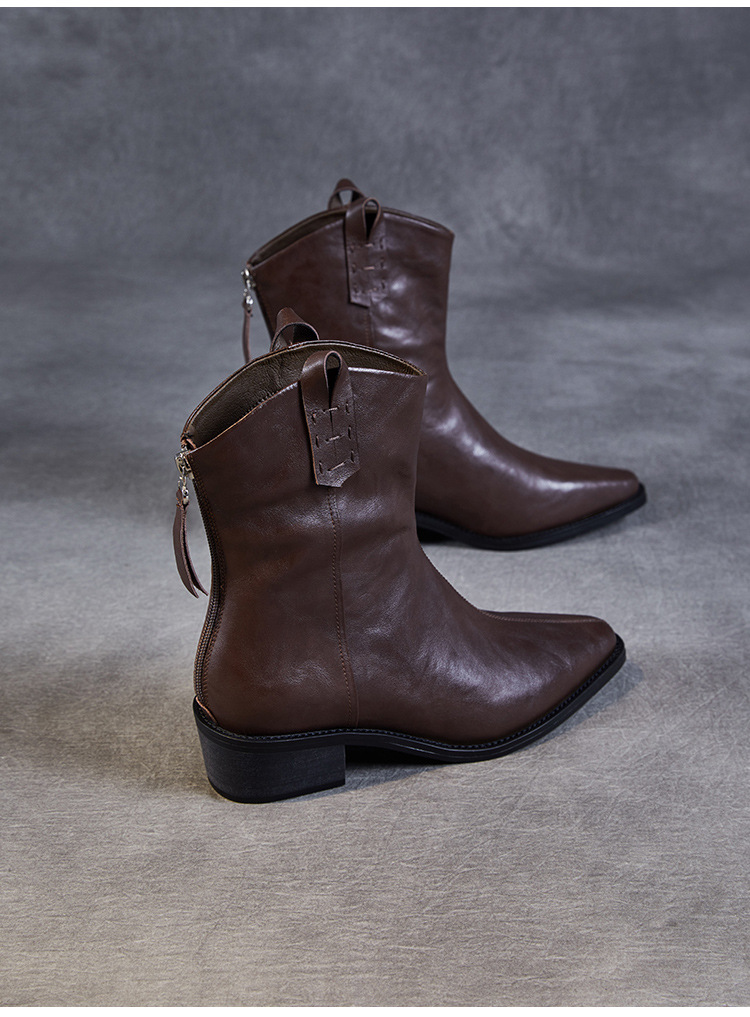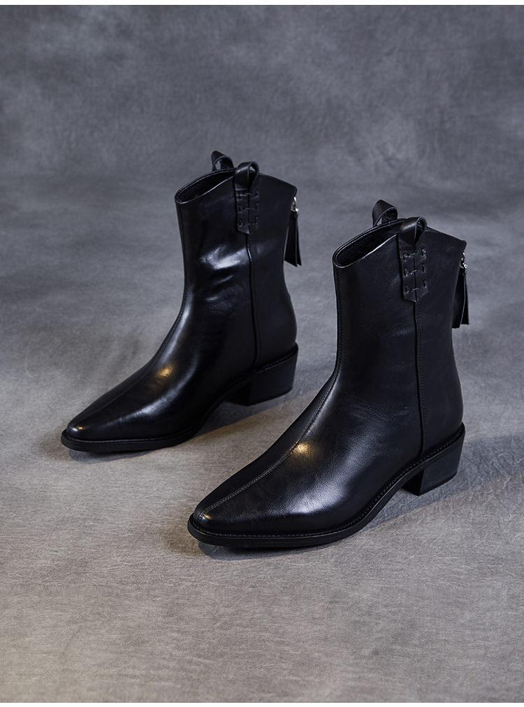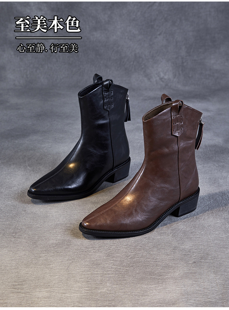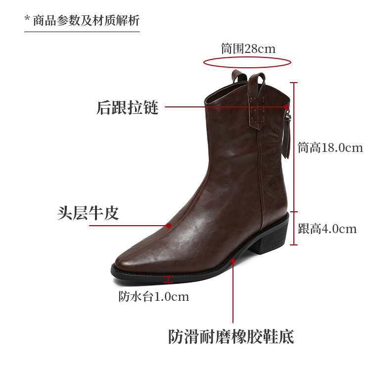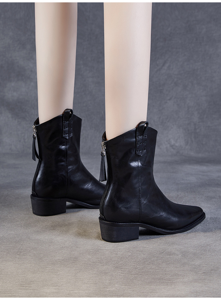 프랑스 정품 가죽 포인팅 웨스턴 발목 부츠 여성의 2024 년 새로운 가을과 겨울 두꺼운 단독 증가 레트로 나이트 마틴 부츠 여성