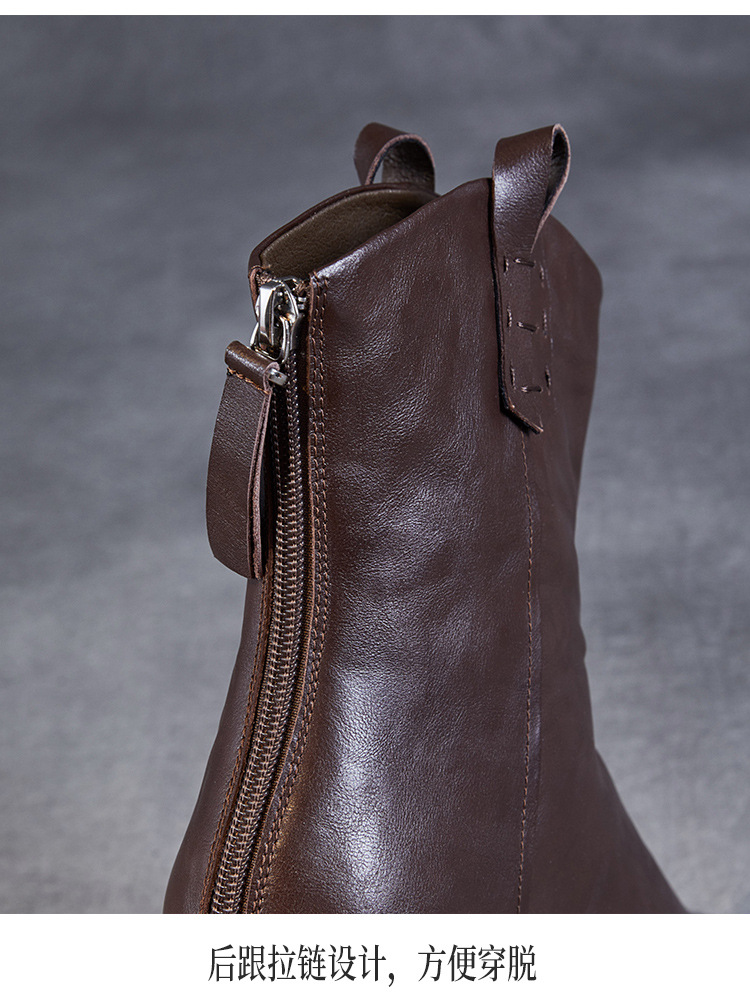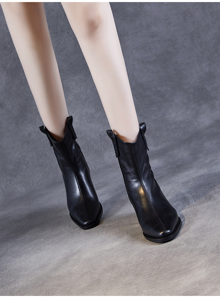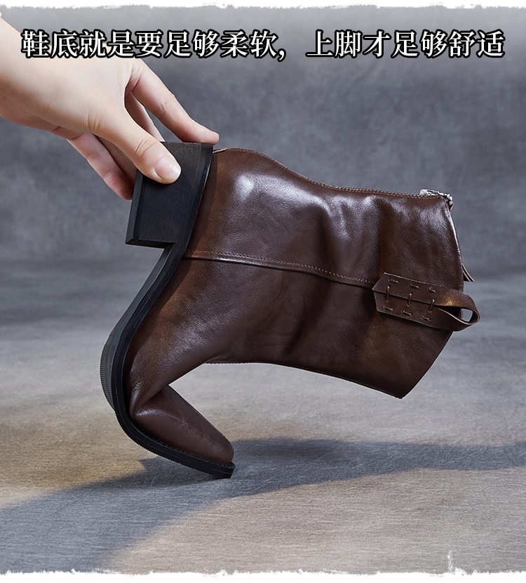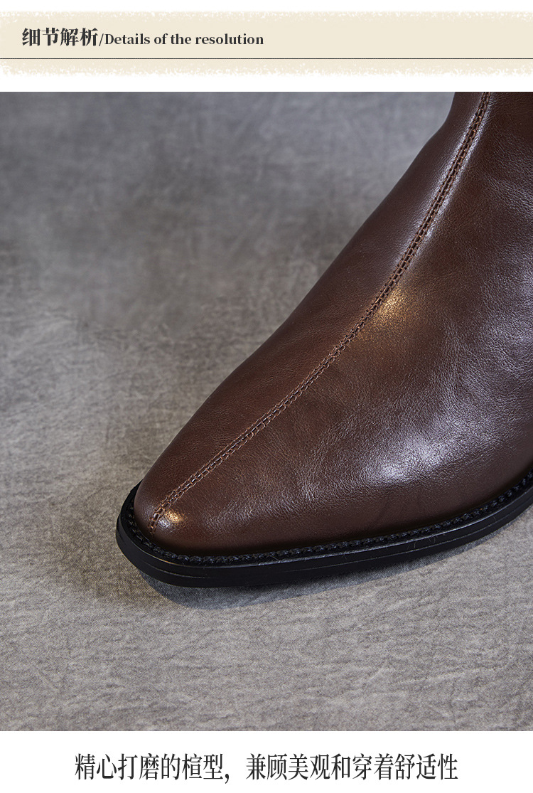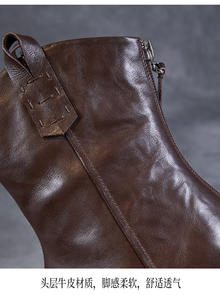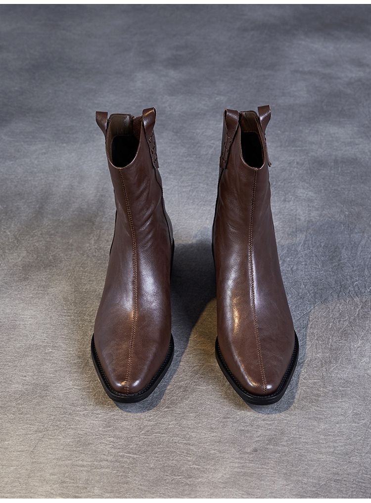프랑스 정품 가죽 포인팅 웨스턴 발목 부츠 여성의 2024 년 새로운 가을과 겨울 두꺼운 단독 증가 레트로 나이트 마틴 부츠 여성