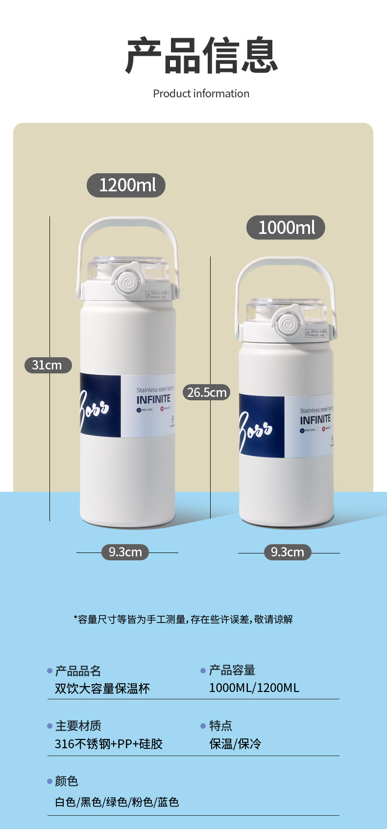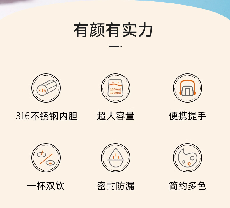 새로운 스타일 간단한 높은 아름다움 가치 휴대용 두 배 음료 진공 보온병 컵 316 스테인레스 스틸 식품 학년 야외 등산 주전자스토어 가기