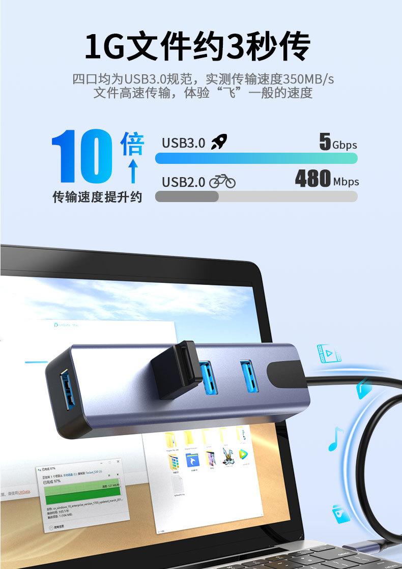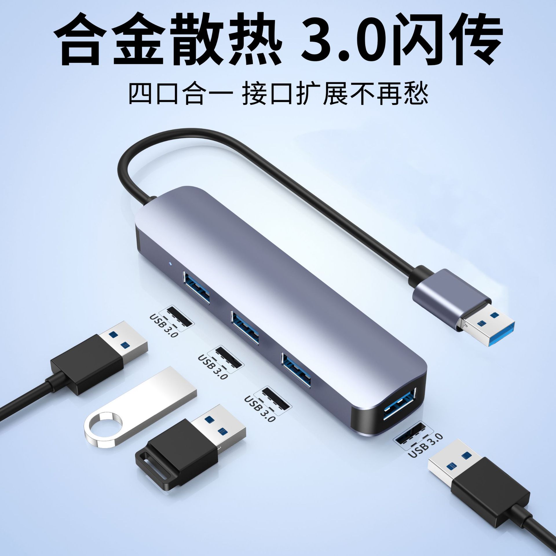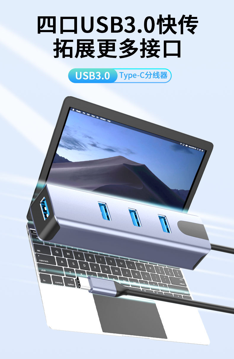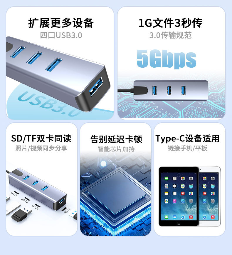 개인 모드 USB 익스텐더 4 포트 3.0 허브 스플리터 컴퓨터 확장 허브 1 대 4 도킹 스테이션스토어 가기