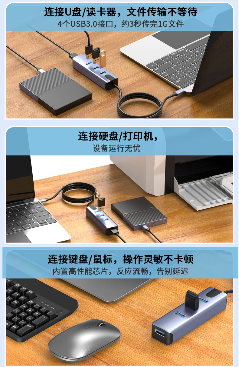 개인 모드 USB 익스텐더 4 포트 3.0 허브 스플리터 컴퓨터 확장 허브 1 대 4 도킹 스테이션