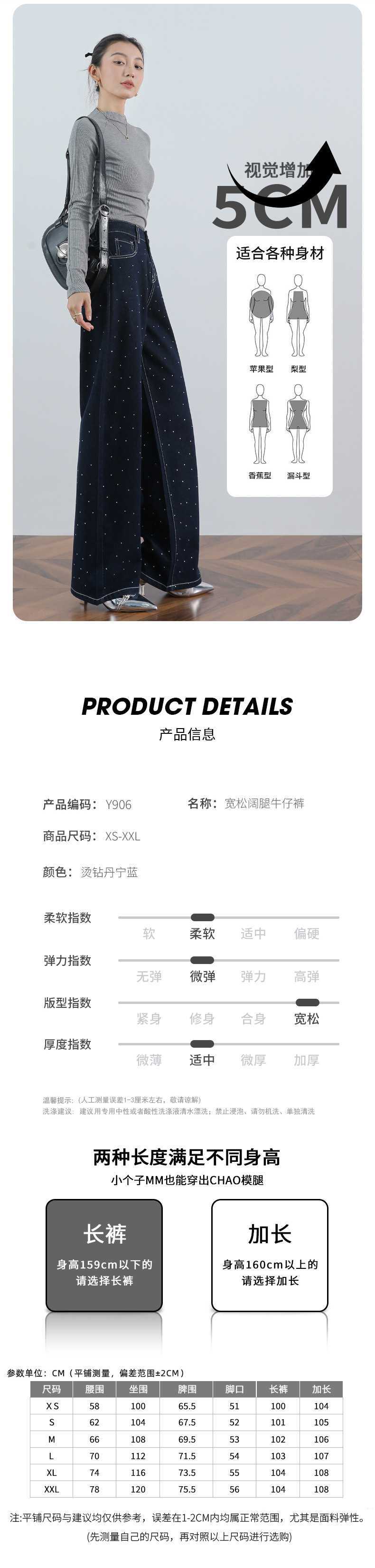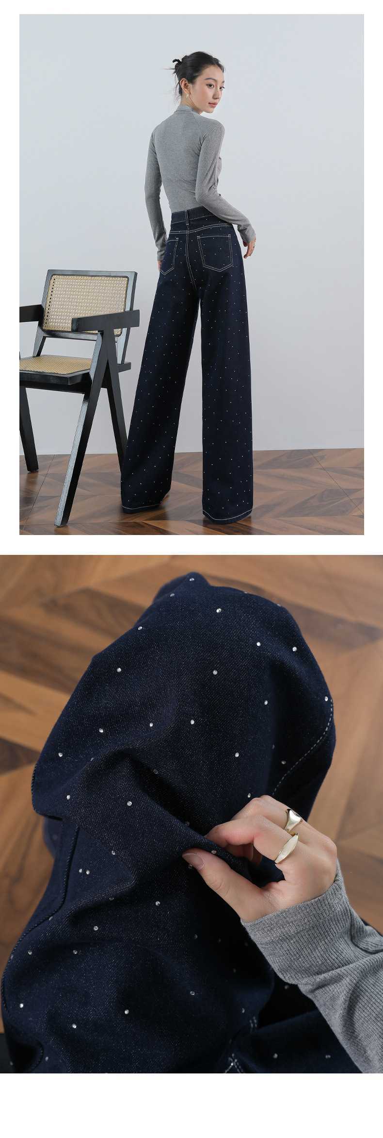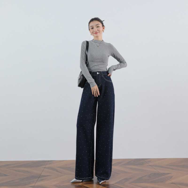 가을과 겨울 & 뜨거운 다이아몬드 타닌 블루 크래프트 데님 블루 슈퍼 소프트 느낌 넓은 다리 청바지 여성 도매스토어 가기