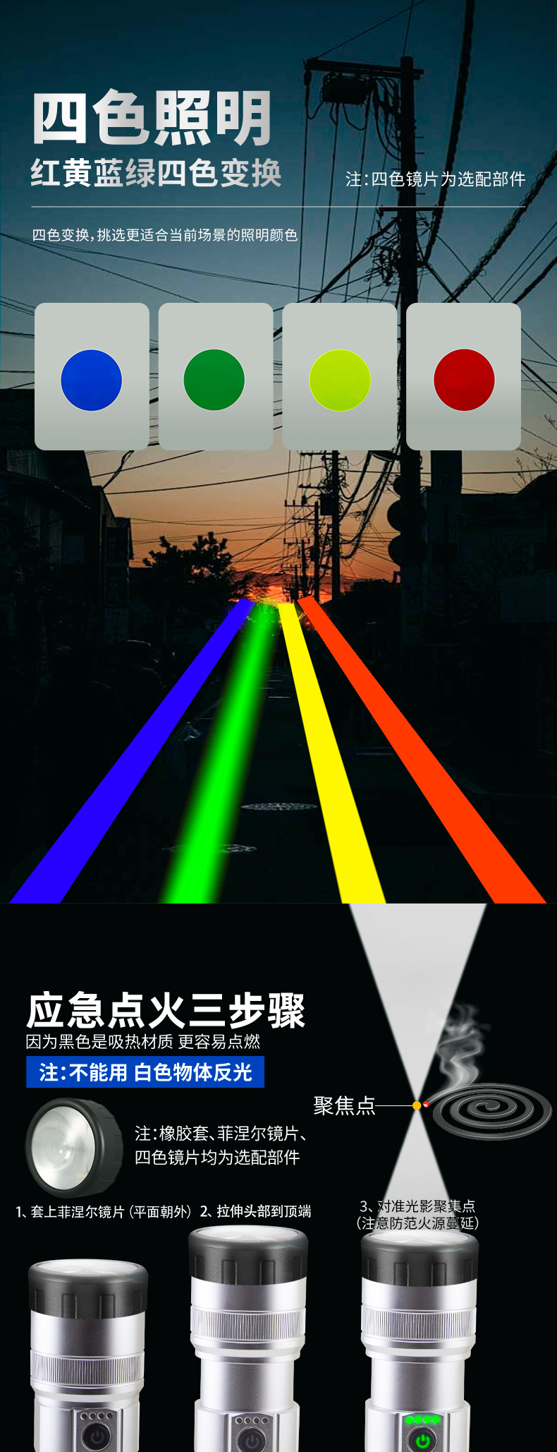 국경을 넘는 강한 가벼운 장거리 줌 손전등 흰색 레이저 야외 순찰 모험 다기능 휴대용 고출력 스포트라이트
