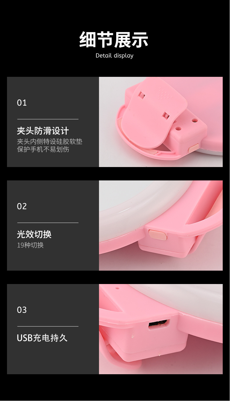 다채로운 A4S RGB 휴대 전화 채우기 빛 LED 라이브 뷰티 링 채우기 빛 휴대 전화 렌즈 셀프 타이머 채우기 빛