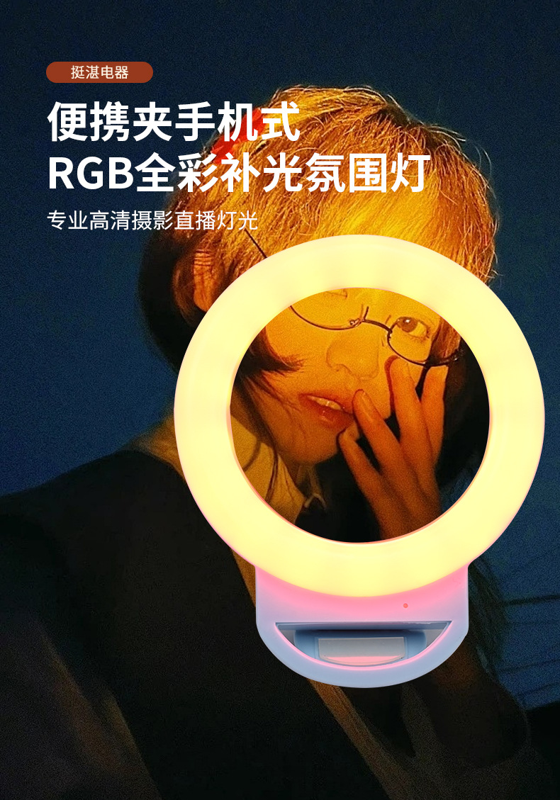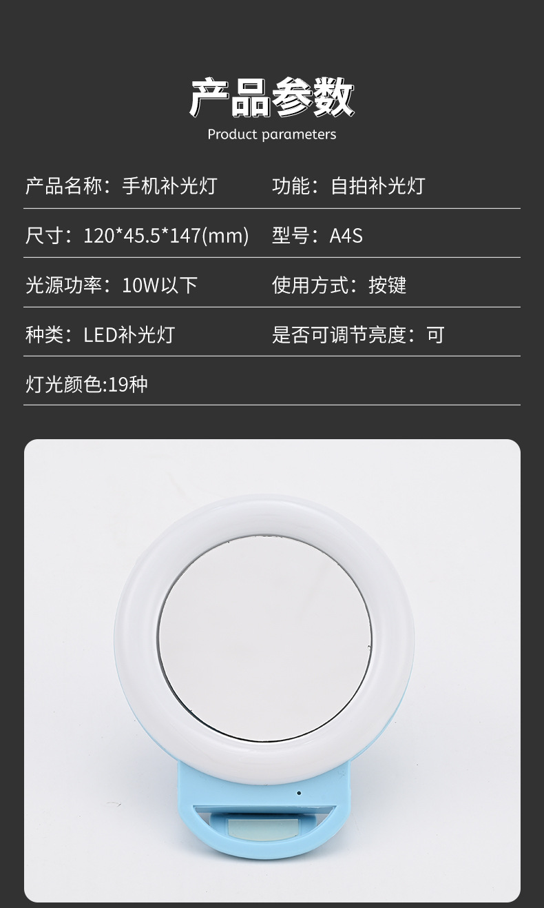 다채로운 A4S RGB 휴대 전화 채우기 빛 LED 라이브 뷰티 링 채우기 빛 휴대 전화 렌즈 셀프 타이머 채우기 빛스토어 가기