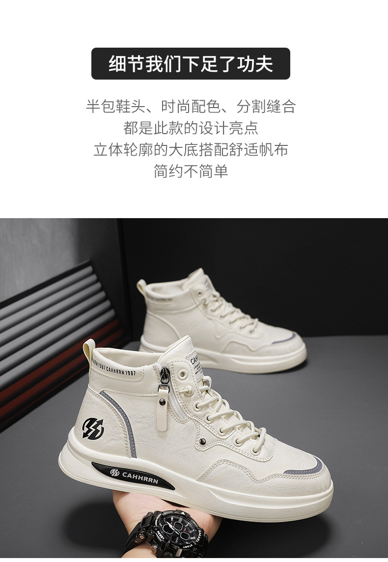 가죽 바느질 남성 하이 탑 캐주얼 워크 화이트 슈즈 가을 레이스 업 프리 사이드 지퍼 플랫 슈즈 남성 신발스토어 가기