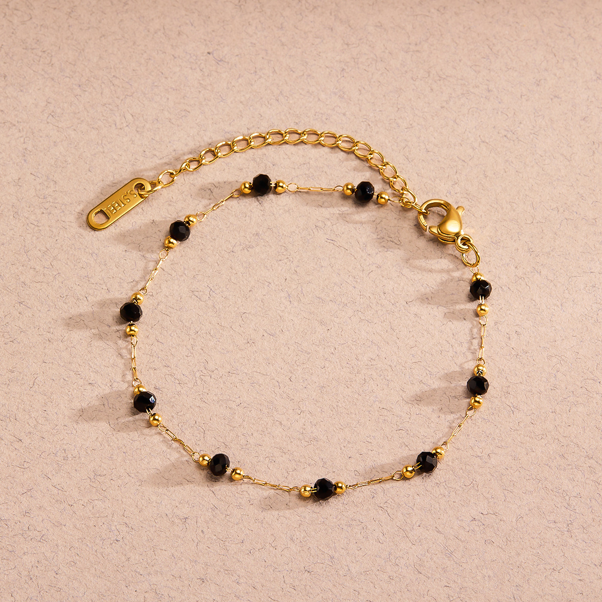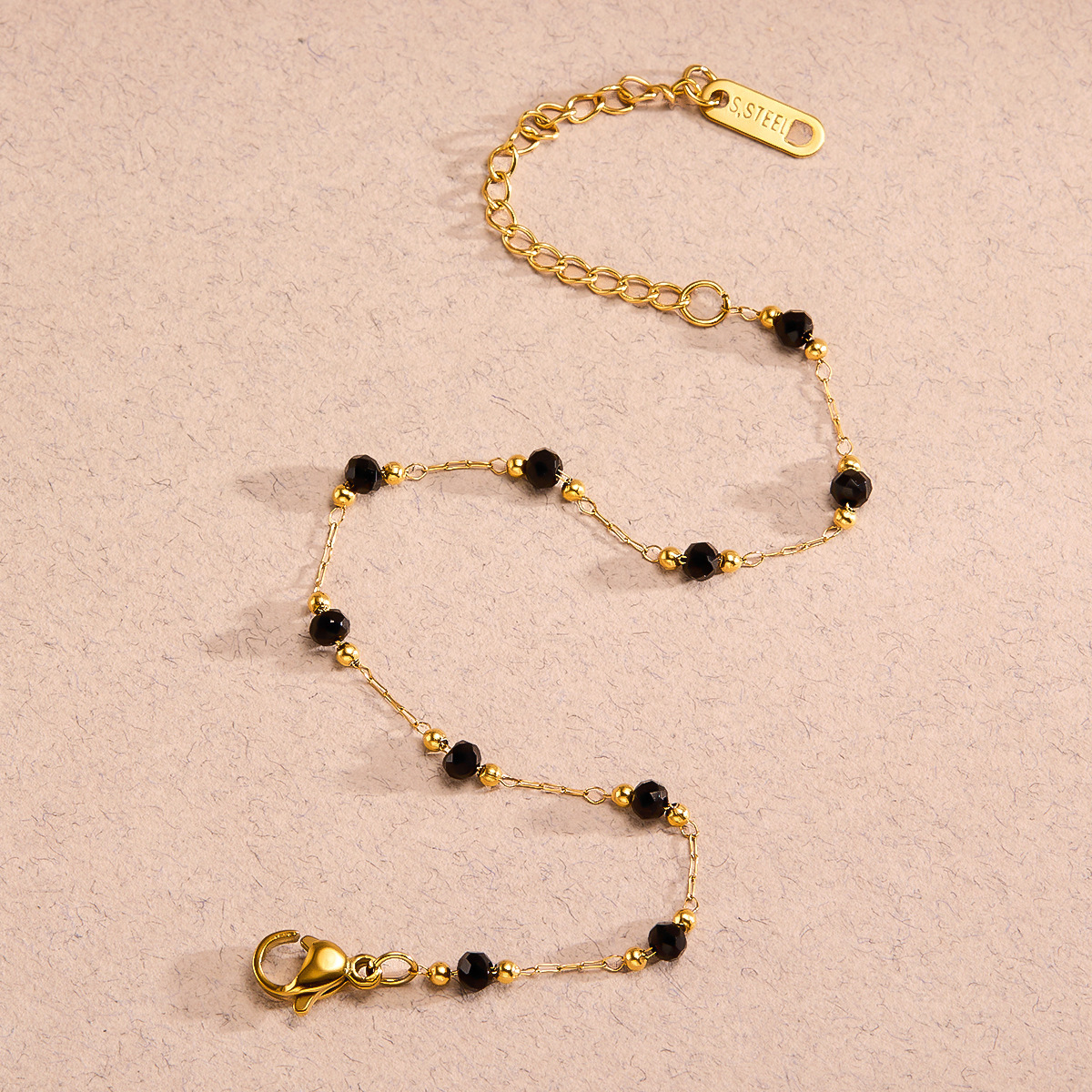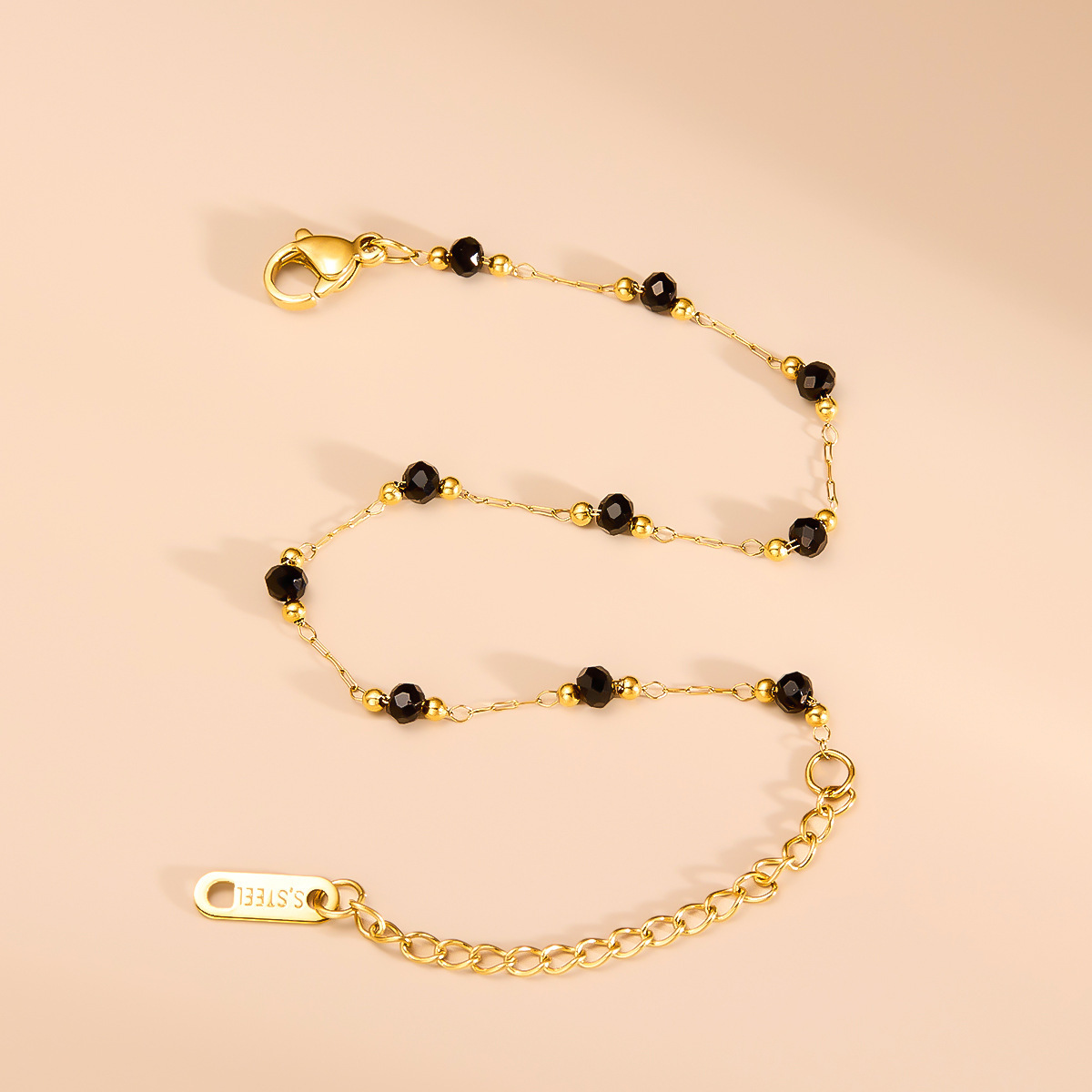 절묘한 블랙 스톤 팔찌 여성용 블랙 오닉스 하이 엔드 디자인 올 매치 패션 티타늄 스틸 목걸이 새로운 틈새 팔찌스토어 가기
