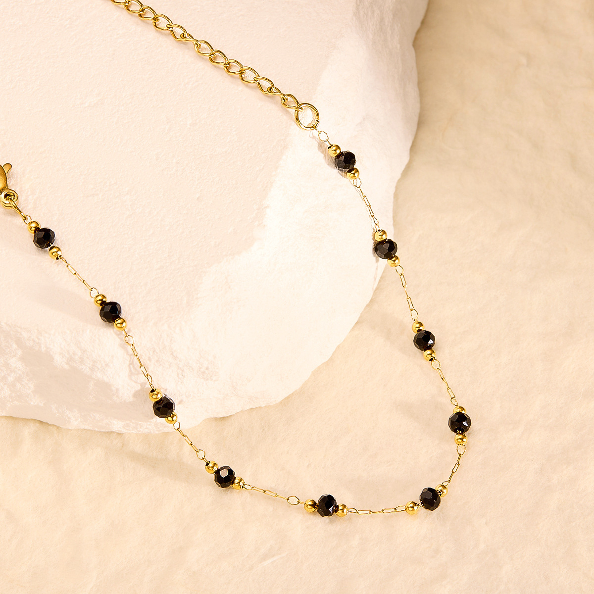 절묘한 블랙 스톤 팔찌 여성용 블랙 오닉스 하이 엔드 디자인 올 매치 패션 티타늄 스틸 목걸이 새로운 틈새 팔찌
