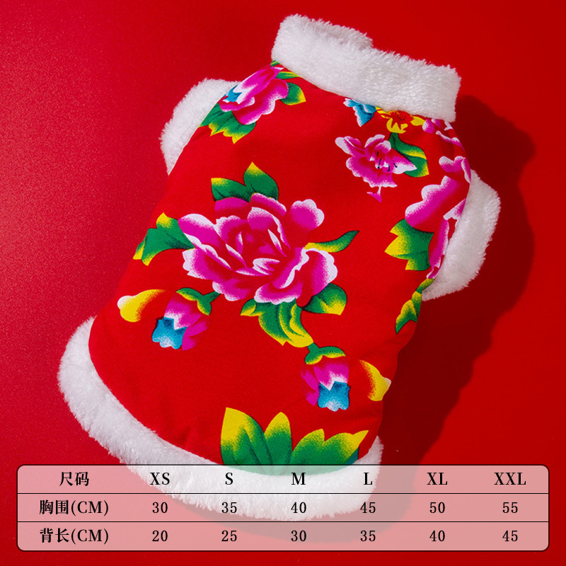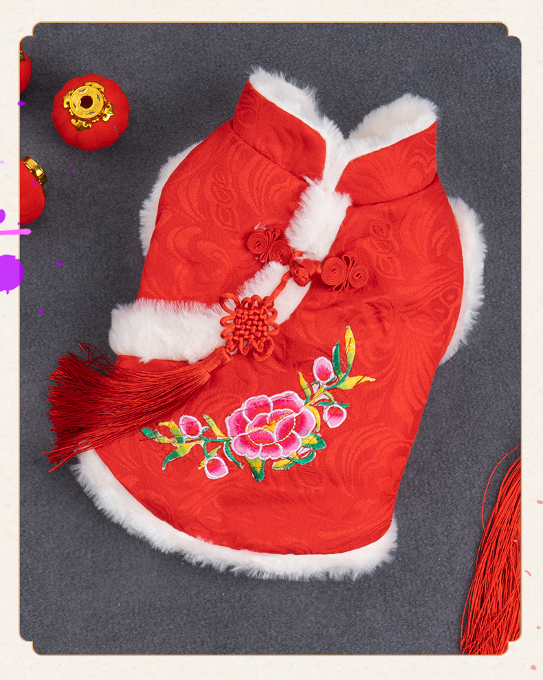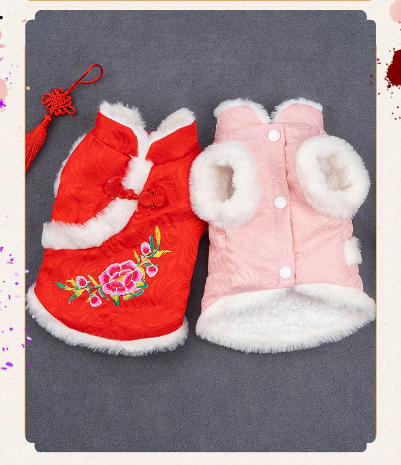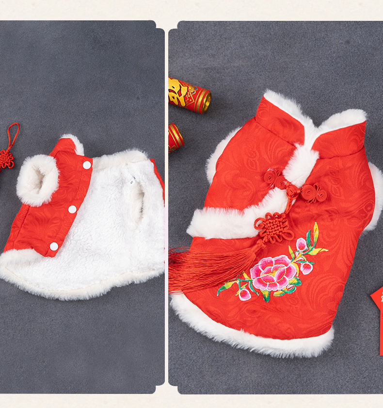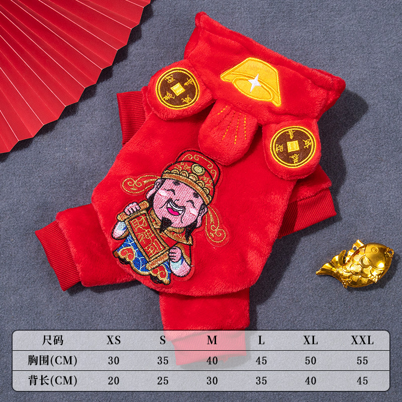 애완 동물 고양이 탕 세트 새해 붉은 축제 개 옷 가을과 겨울 테디 고양이 한푸 애완 동물 의류스토어 가기