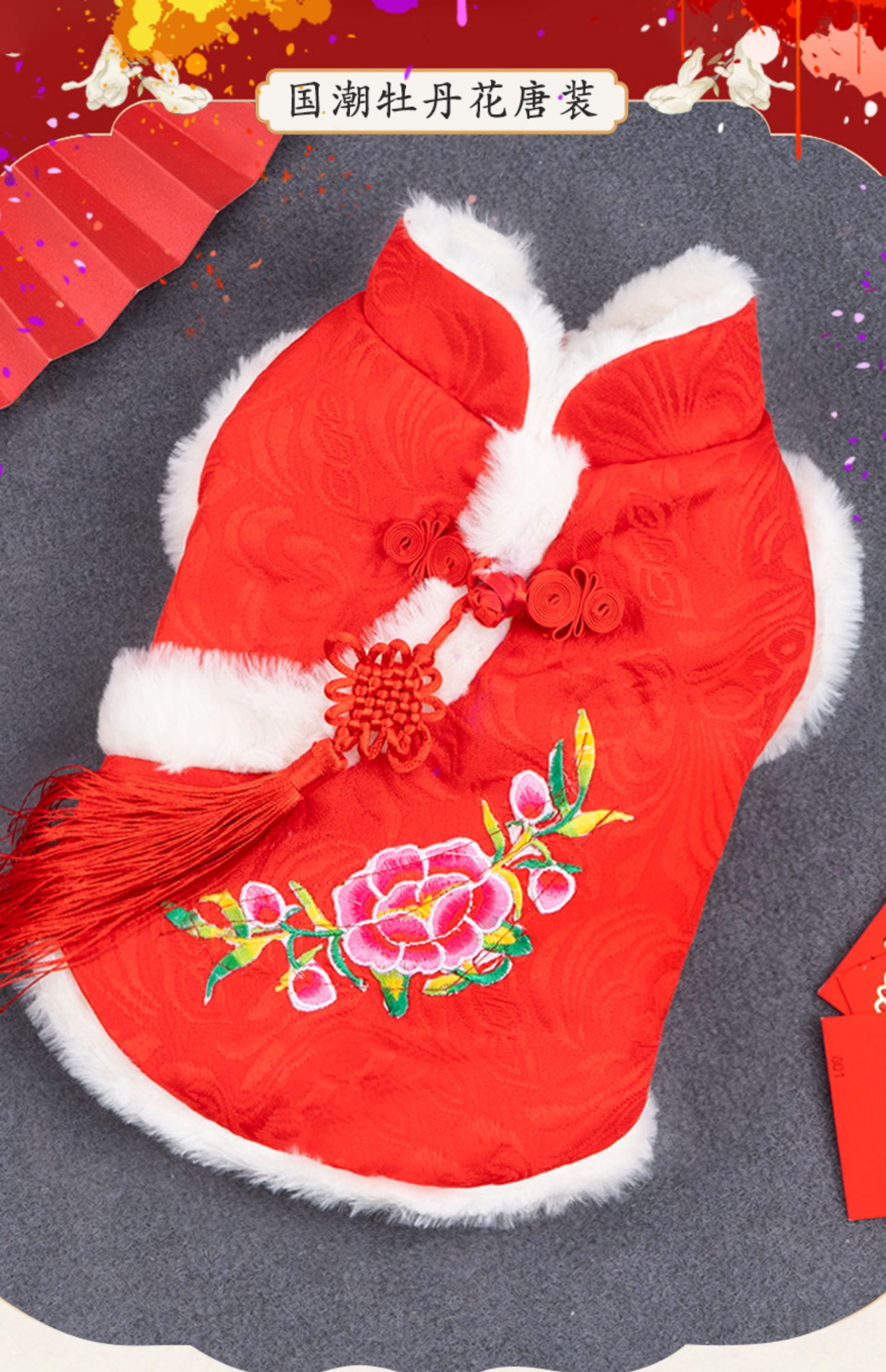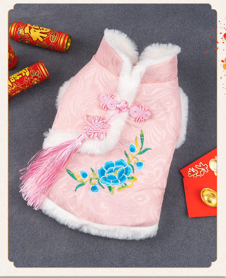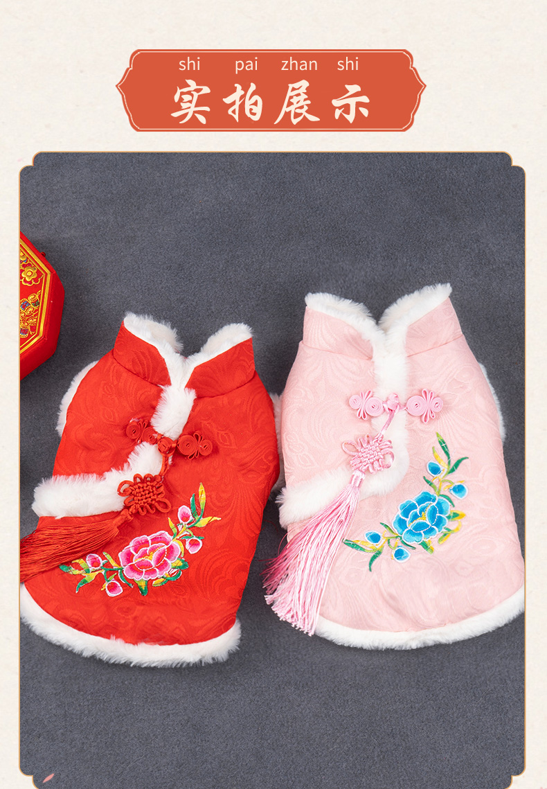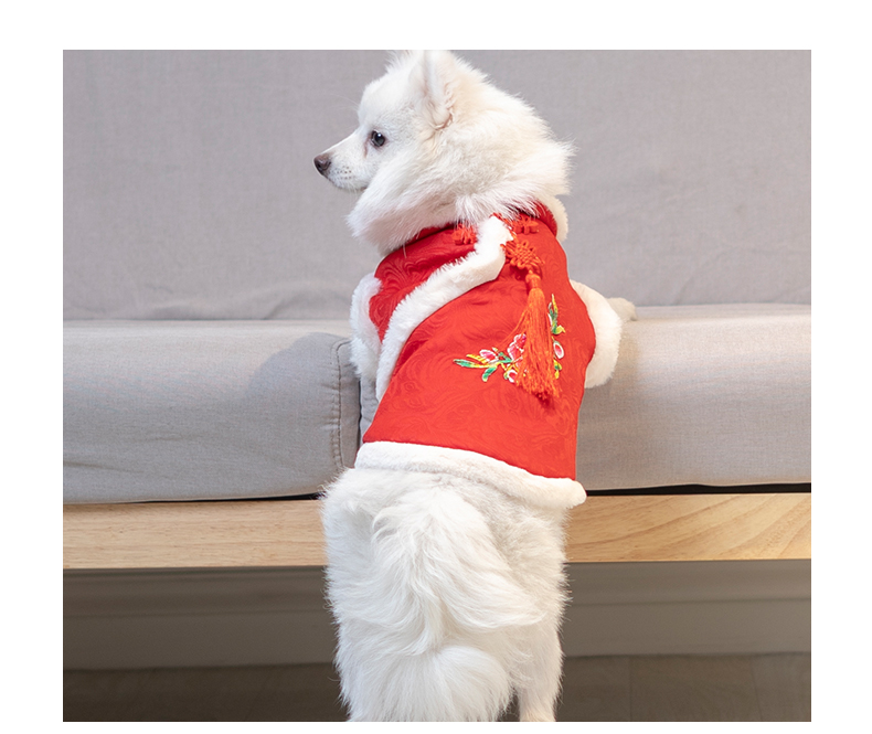 애완 동물 고양이 탕 세트 새해 붉은 축제 개 옷 가을과 겨울 테디 고양이 한푸 애완 동물 의류스토어 가기