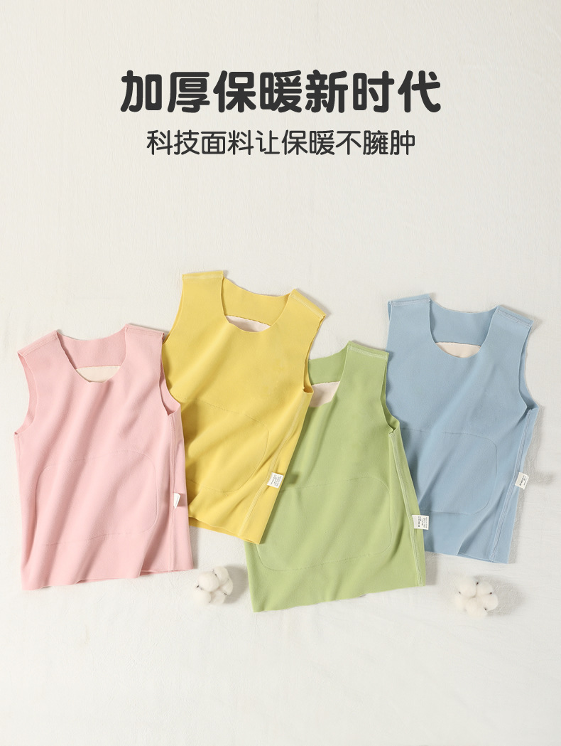 아동용 벨벳 조끼, 여아용 보온 조끼, 남아용 발열 기능성 이너웨어, 봄 가을용, 배와 허리를 보호하는 두꺼운 조끼