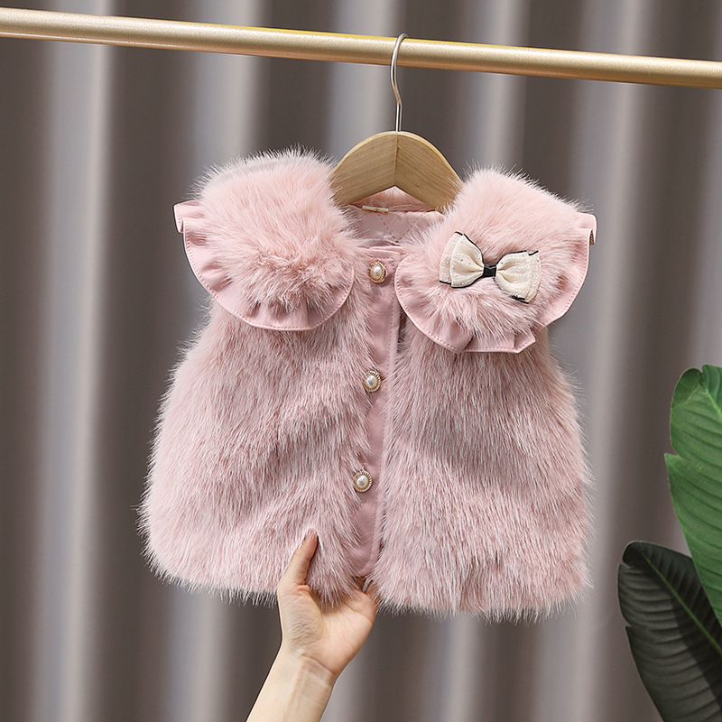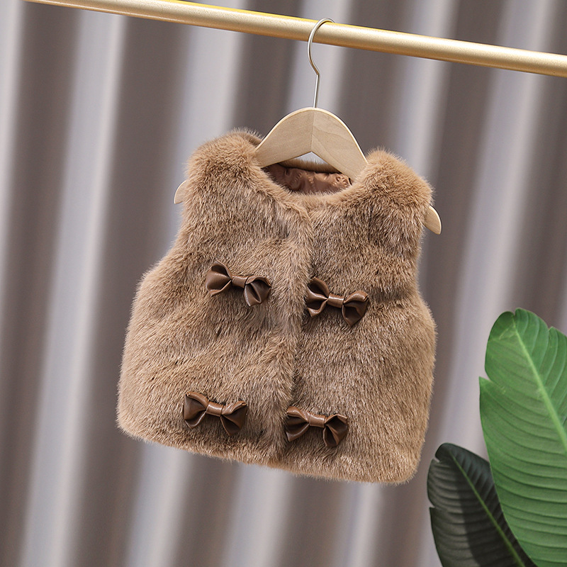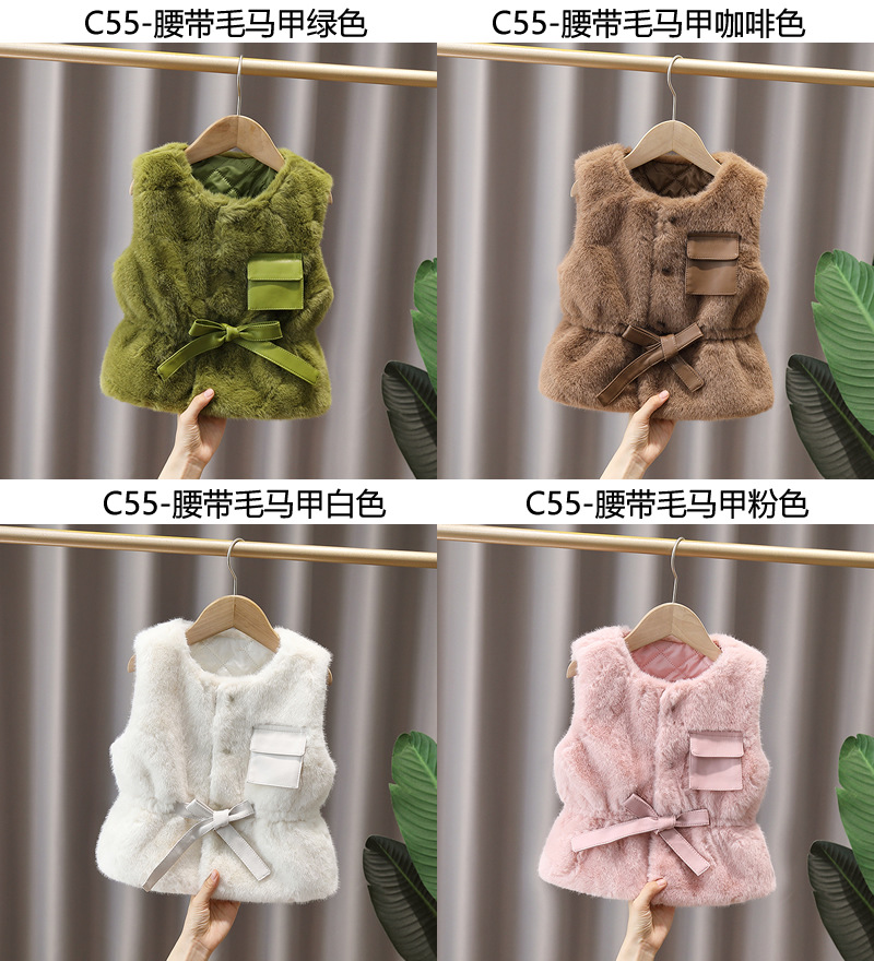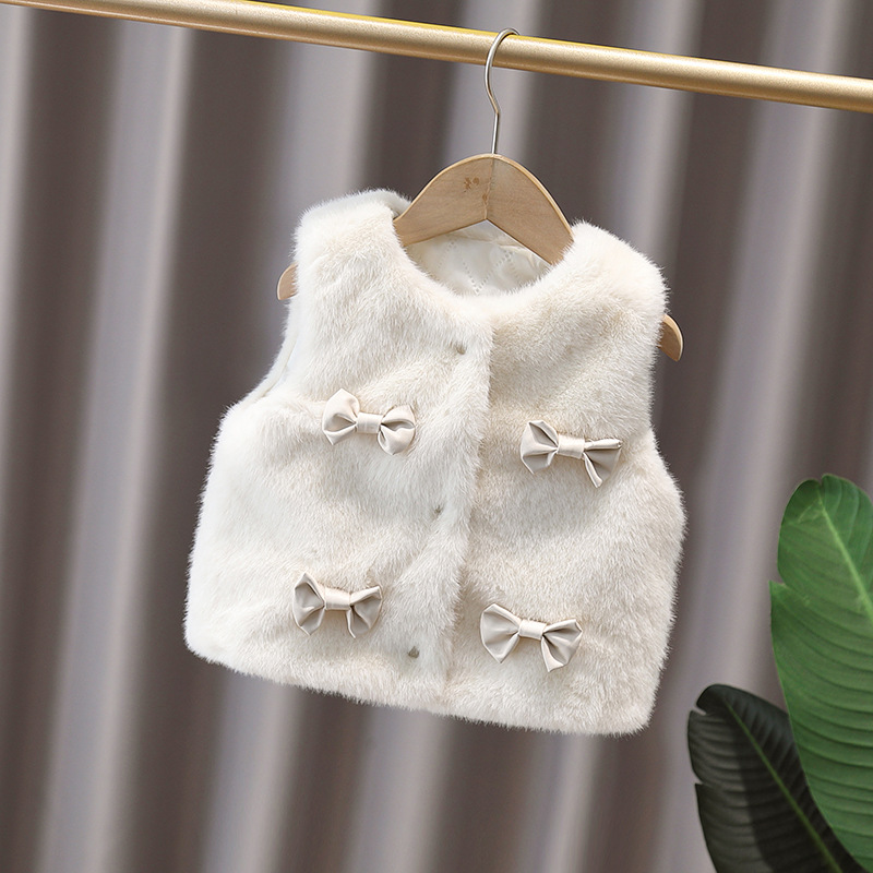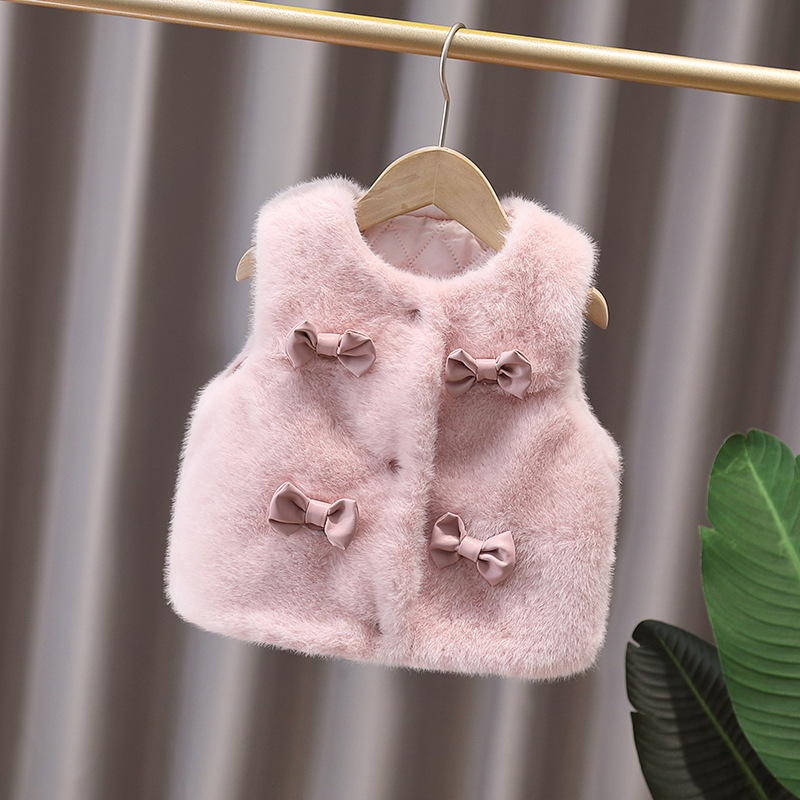 2025년 겨울 신상 여아용 꽃무늬 고급 모직 스웨터 조끼, 한국식 리본 조끼스토어 가기