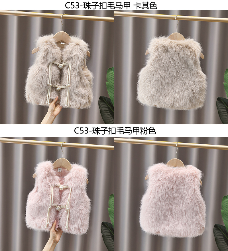 • C51 이미테이션 래빗 퍼 코튼 베스트 (카키)