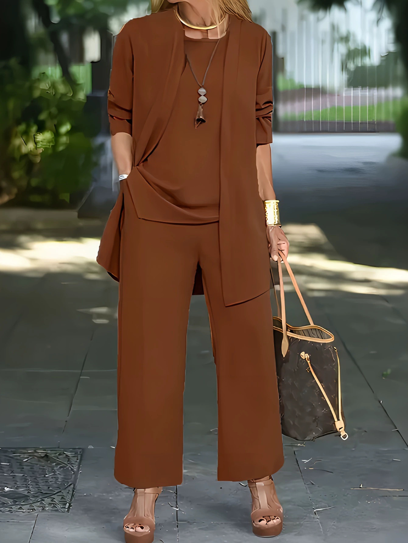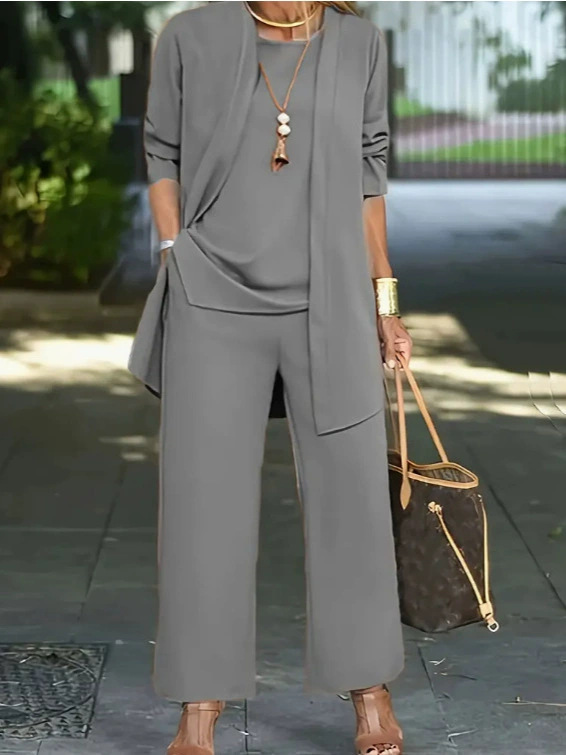 여성을위한 패션 정장 2025 가을, 겨울 새로운 스타일 하이 엔드 외국 스타일 와이드 레이디 슬리밍 및 연령 감소 플러스 사이즈 여성 3 피스 세트
