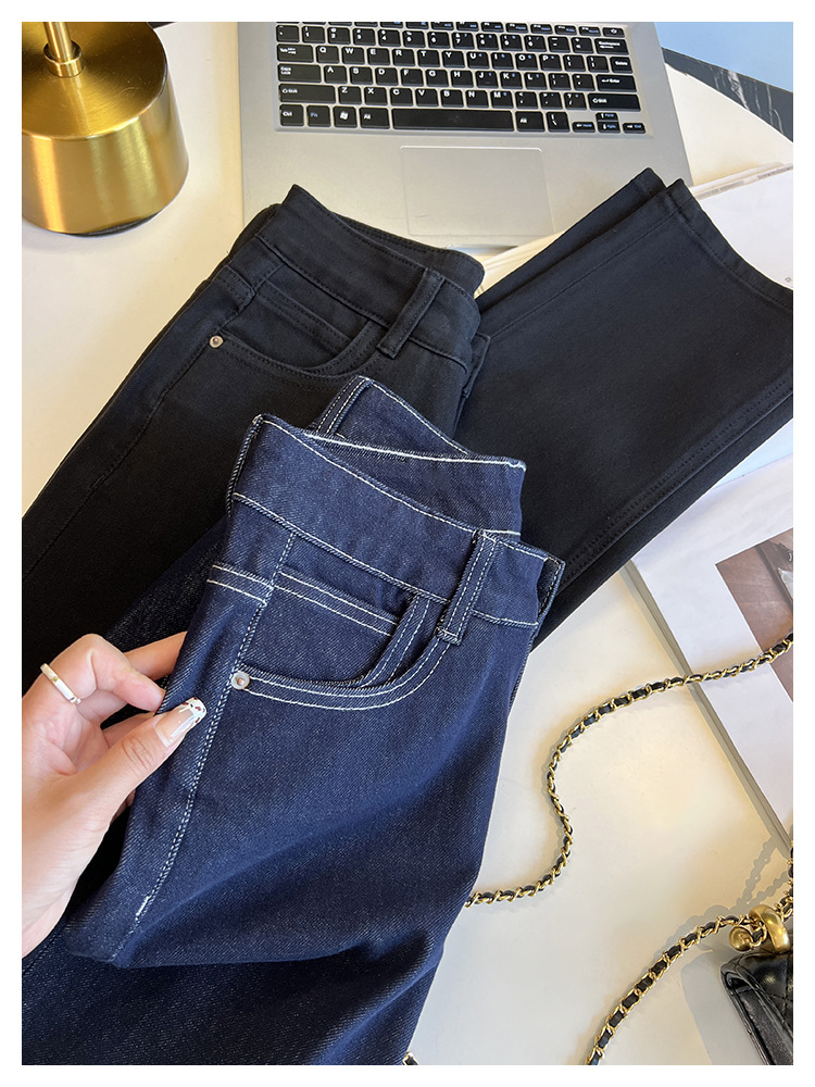 버전은 거대합니다! 스트레이트 레그 ~ 4 면 바게트 청바지 여성의 2024 가을 뉴 9 스트레이트 청바지