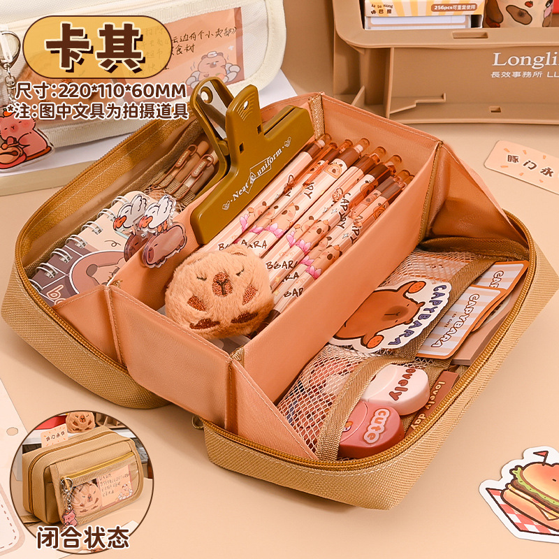 초등 및 중등 학교 학생을위한 새로운 대용량 솔리드 컬러 문구 가방 더러운 저항하는 간단한 Ins 스타일 틈새 연필 케이스 통증 가방스토어 가기