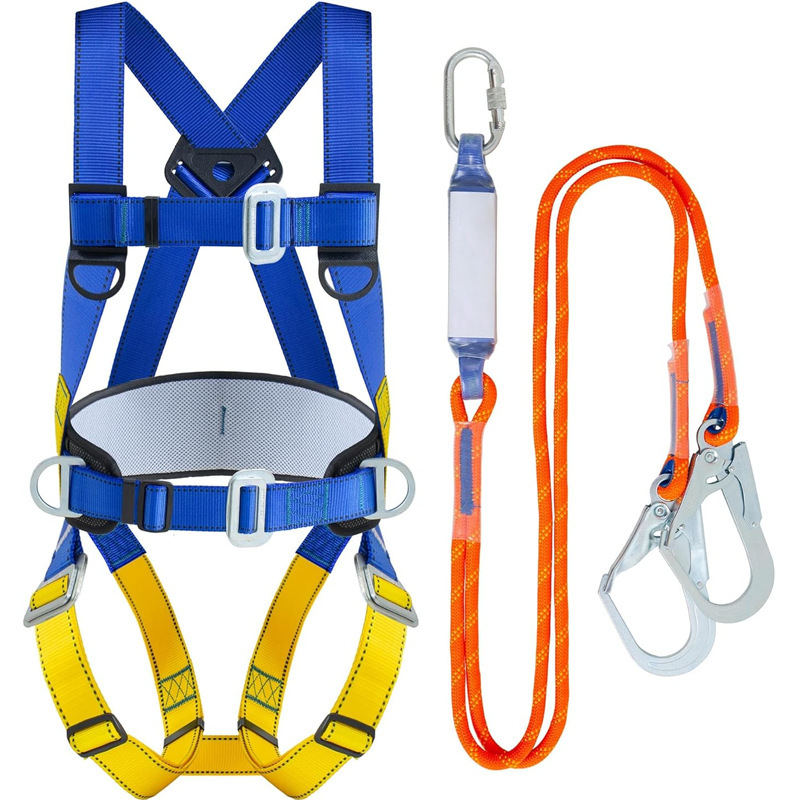 아마존 전신 추락 방지 안전벨트 세트(D형 링 및 이중 대형 후크 안전 로프 포함)