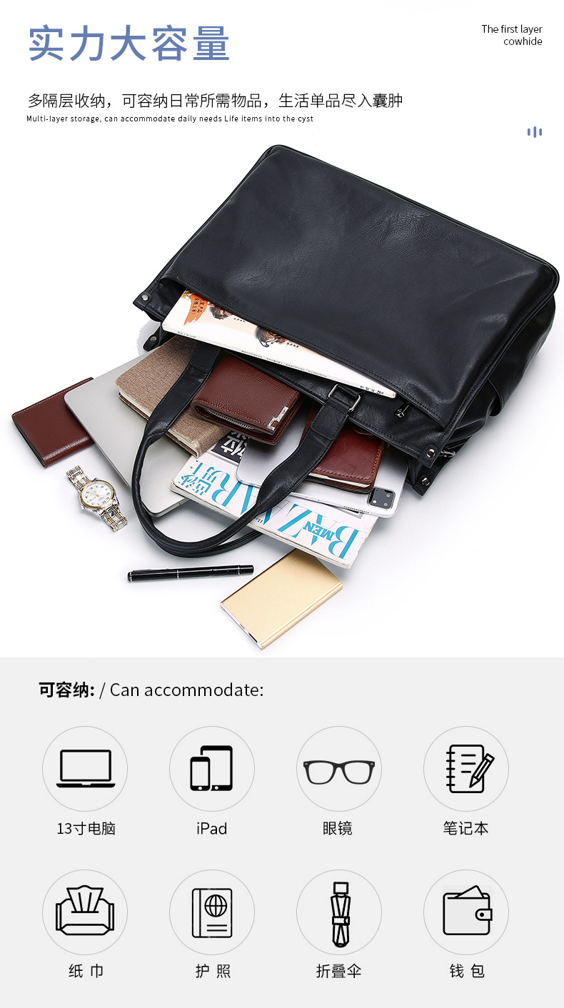 Handmade genuine leather large capacity business travel briefcase computer cover layer vegetable tanned cowhide casual men's handbag