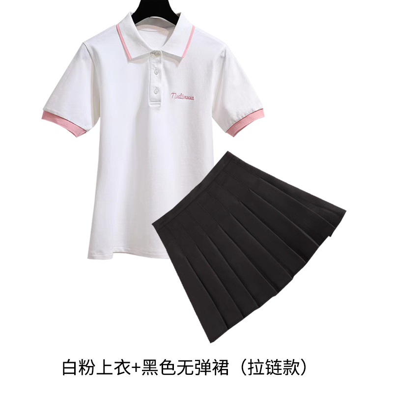 • 화이트 핑크 T + 블랙 스커트 (신축성 없는 지퍼 버전)