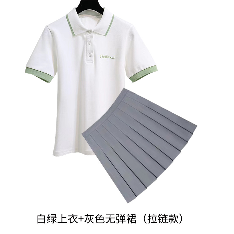 • 흰색과 녹색 T + 회색 스커트 (신축성 없는 지퍼 버전)