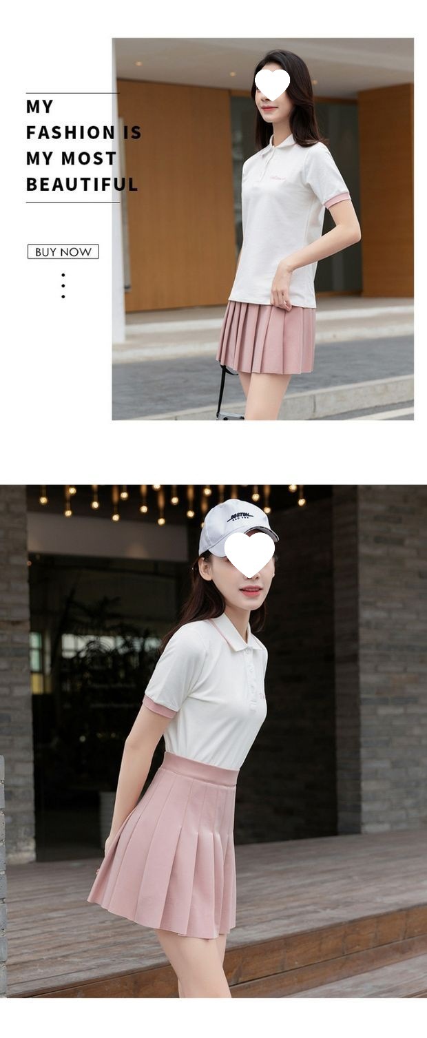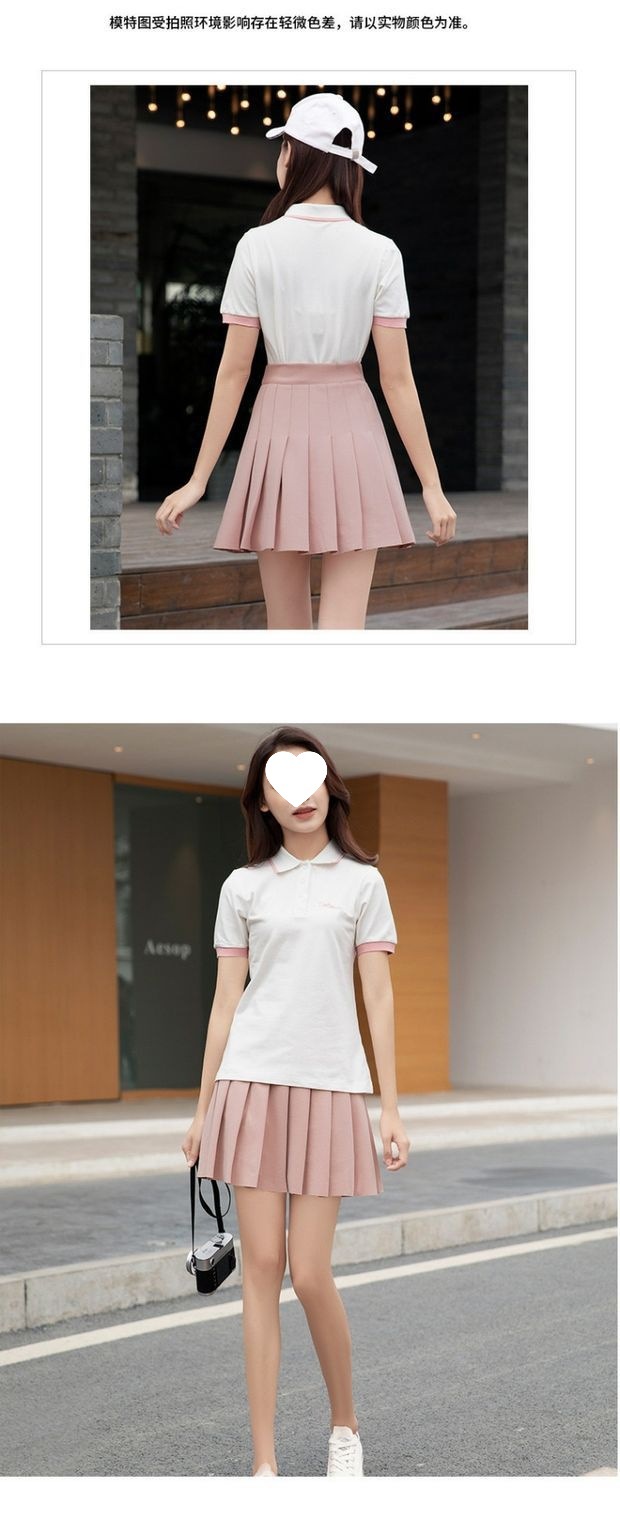 여름 골프 여자 반팔 의류 옷깃 탑 티셔츠 스포츠 캐주얼 볼 옷 여성용 눈부심 짧은 치마 세트스토어 가기