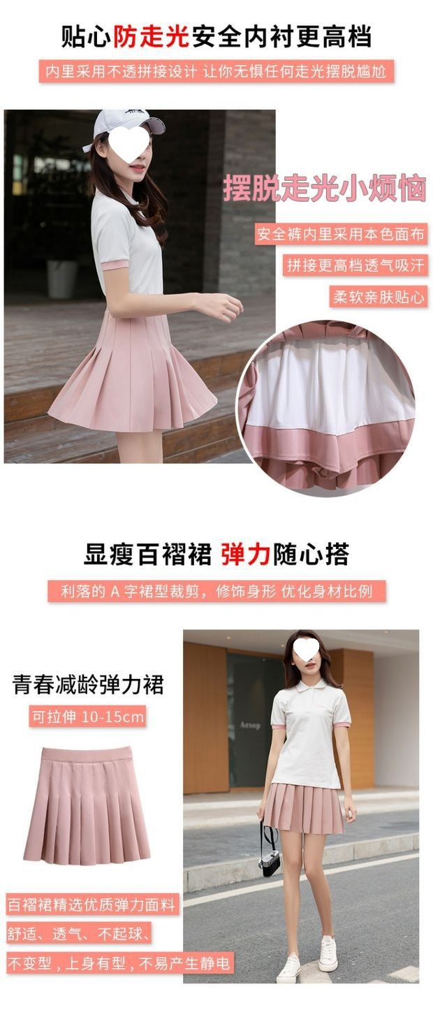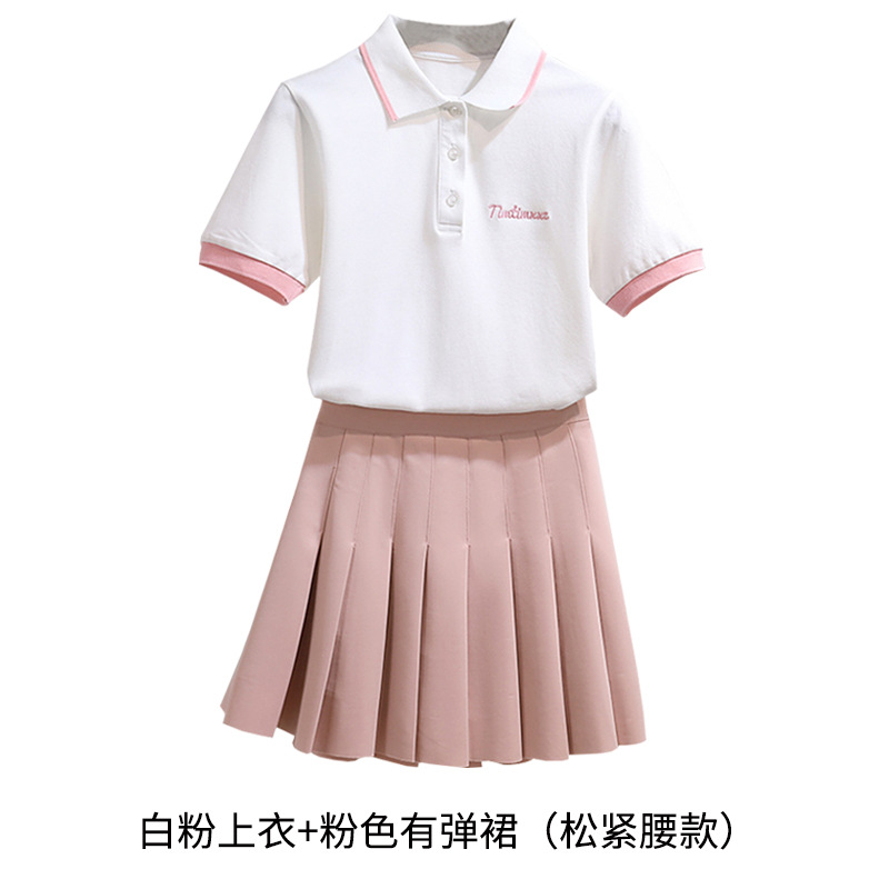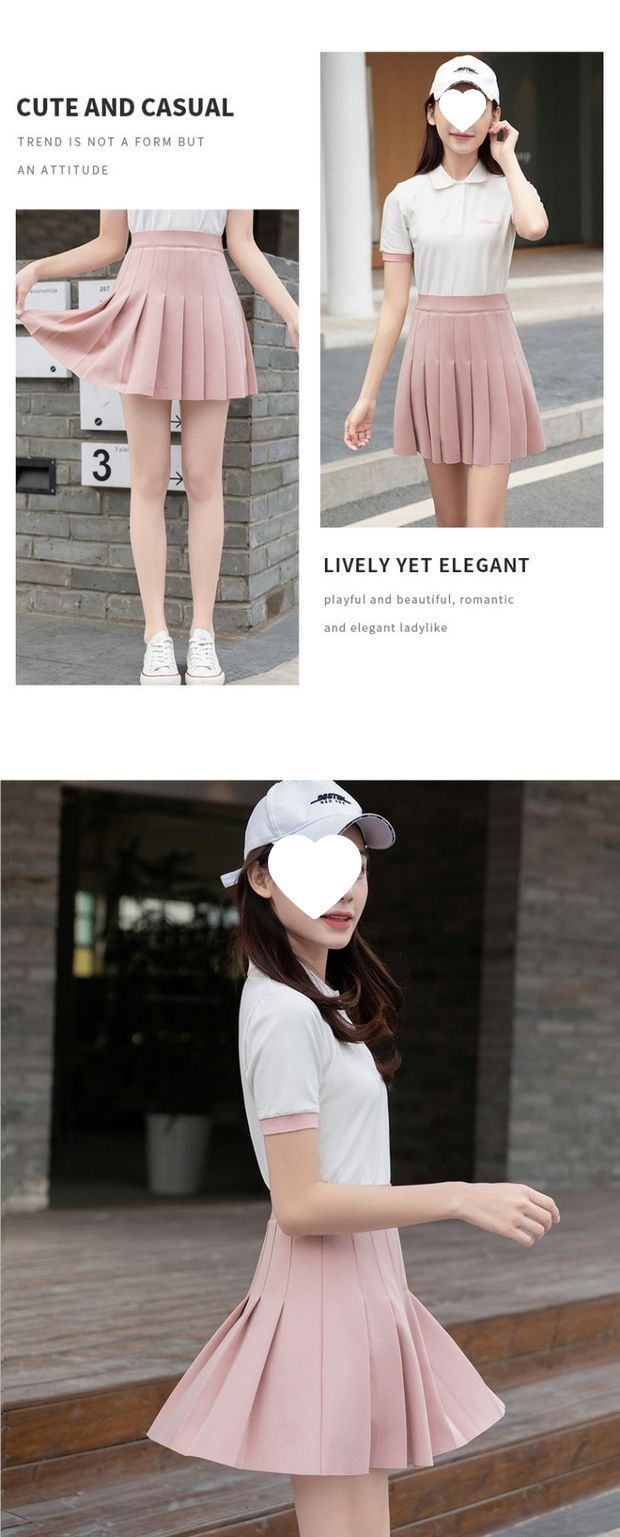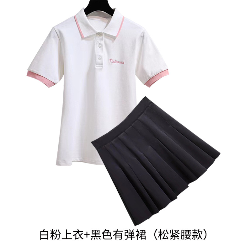 • 화이트 핑크 T + 블랙 스커트 (신축성 있는 허리)