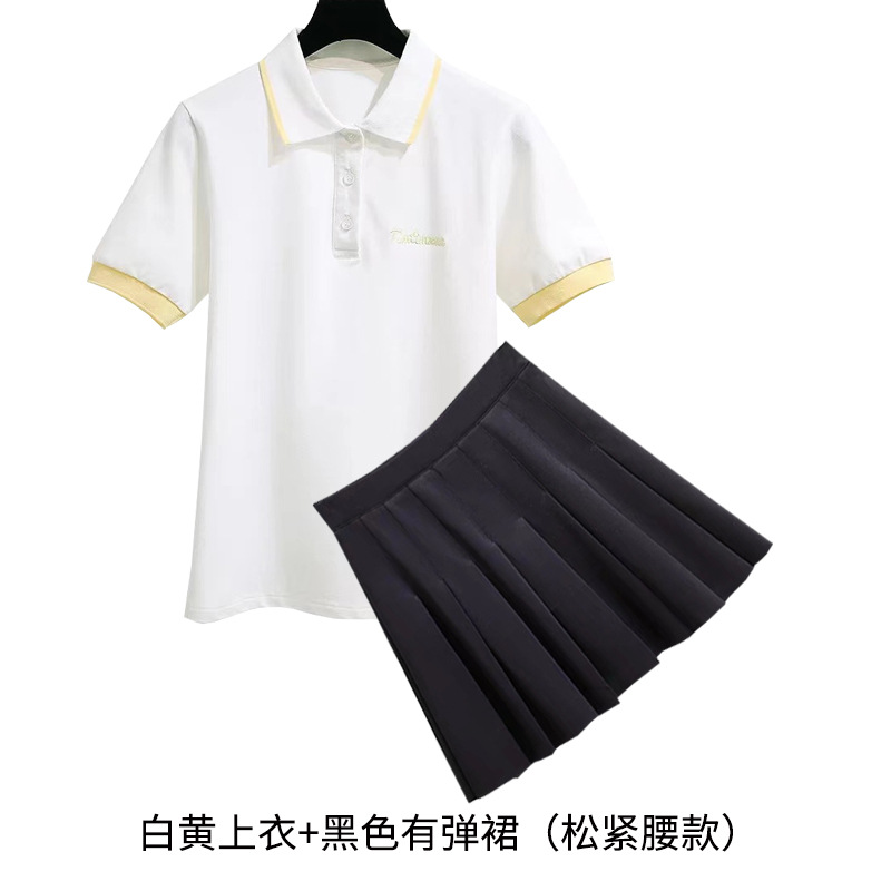 • 흰색과 노란색 T + 검정색 스커트 (신축성 있는 허리)
