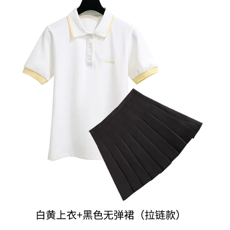 • 흰색과 노란색 T + 검정색 스커트 (신축성 없는 지퍼 버전)
