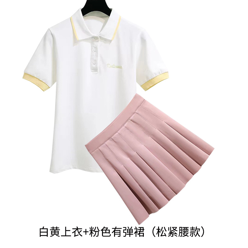 • 흰색과 노란색 T + 핑크 스커트 (신축성 있는 허리)