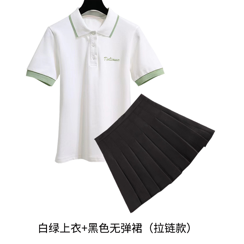 • 흰색과 녹색 T + 검정색 스커트 (신축성 없는 지퍼 버전)