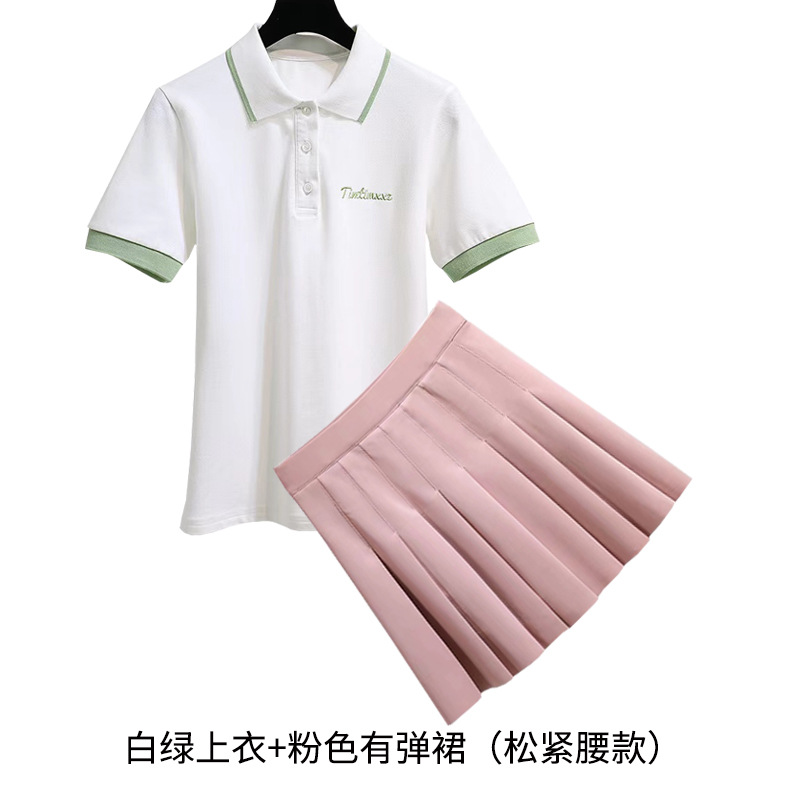 • 화이트, 그린 T+핑크 스커트 (신축성 있는 허리)
