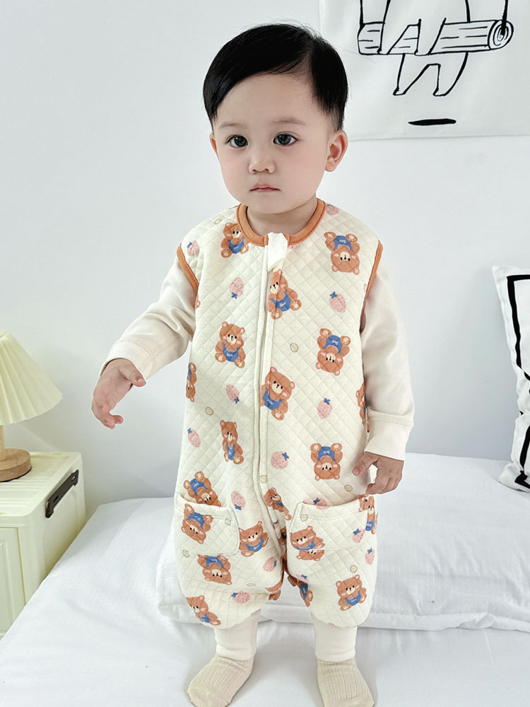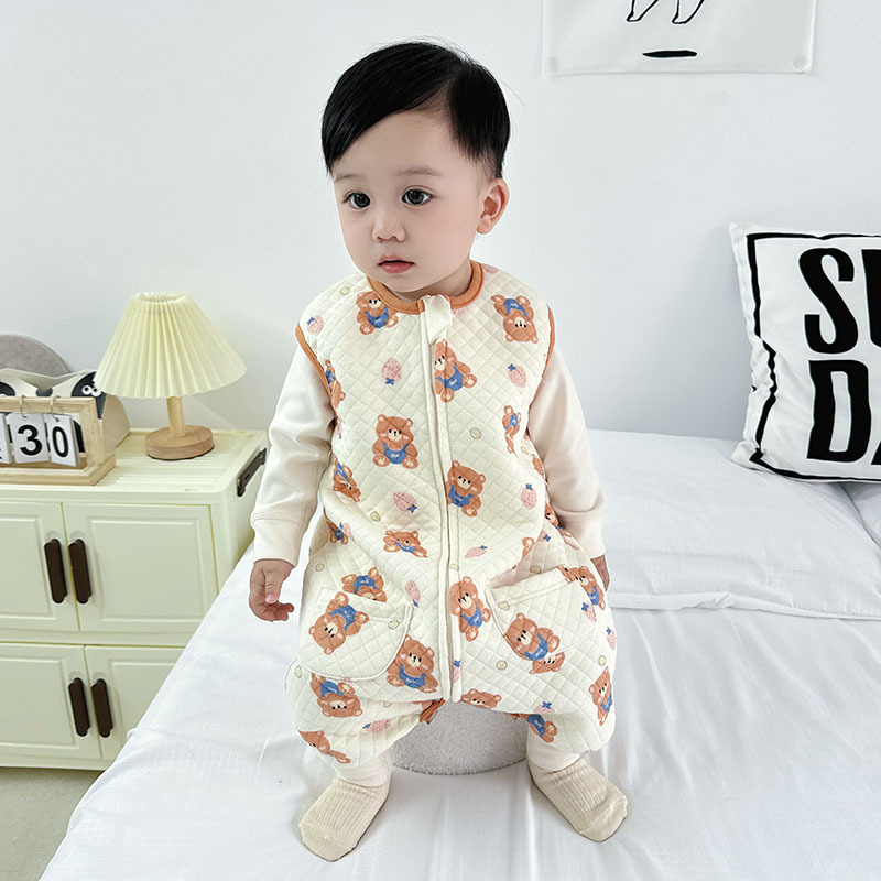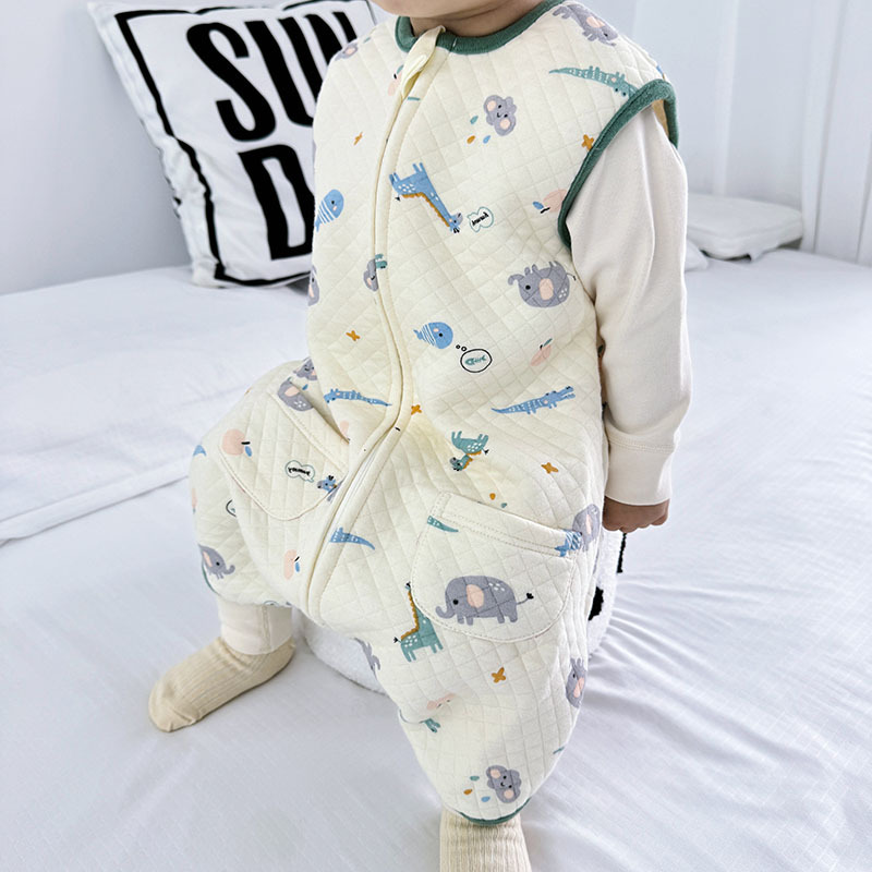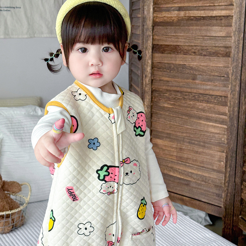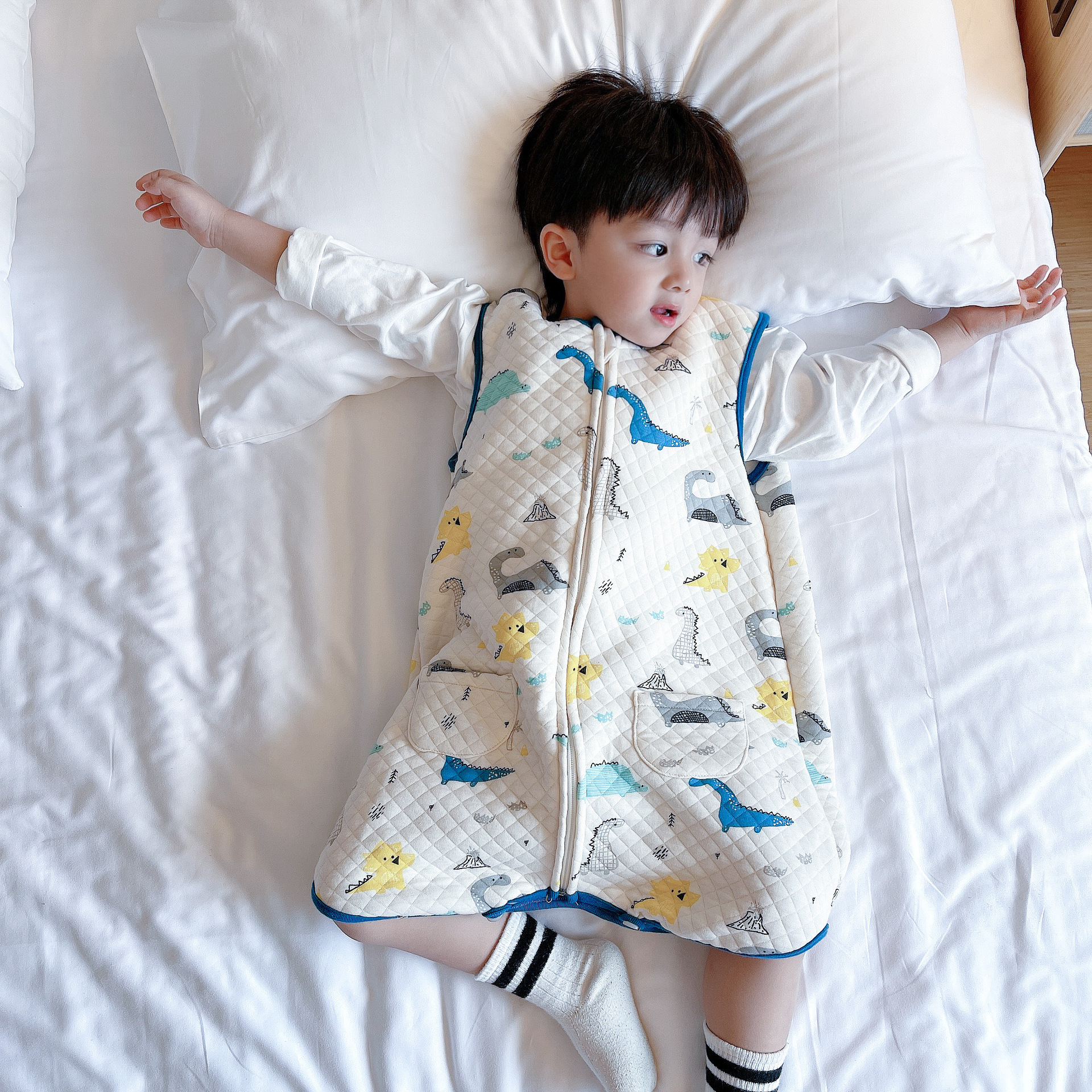 새로운 가을과 겨울 아기 민소매 침낭 어린이 클립면 원피스 잠옷 소년과 소녀 얇은 면화 조끼 홈 의류스토어 가기