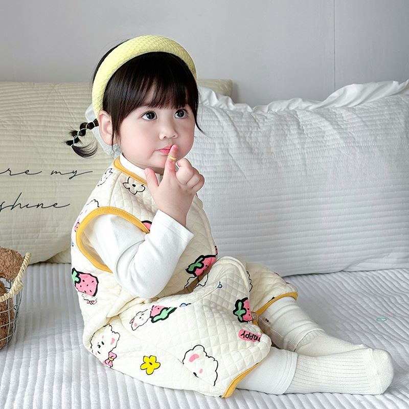 새로운 가을과 겨울 아기 민소매 침낭 어린이 클립면 원피스 잠옷 소년과 소녀 얇은 면화 조끼 홈 의류