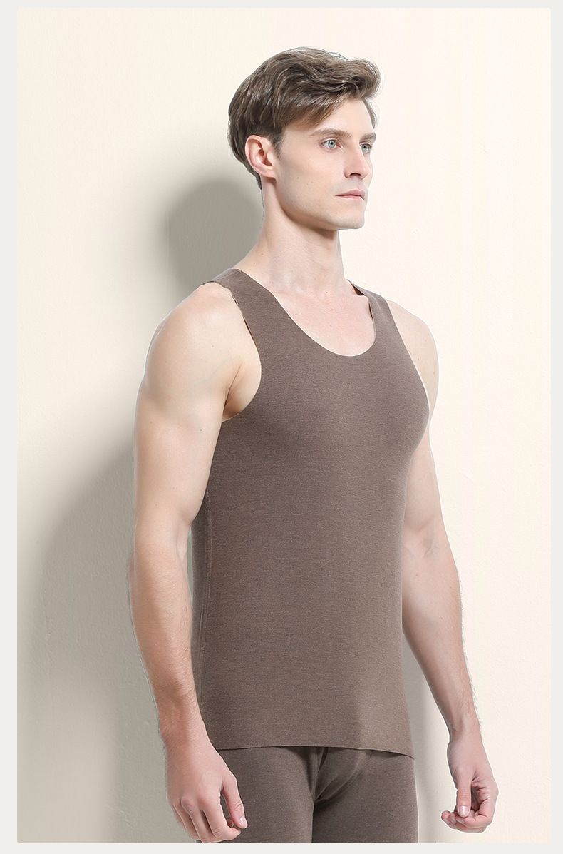 새로운 국경 가을과 겨울 남자 실크 울 열 조끼 기모 두꺼운 traceles베이스 민소매 티셔츠 재고