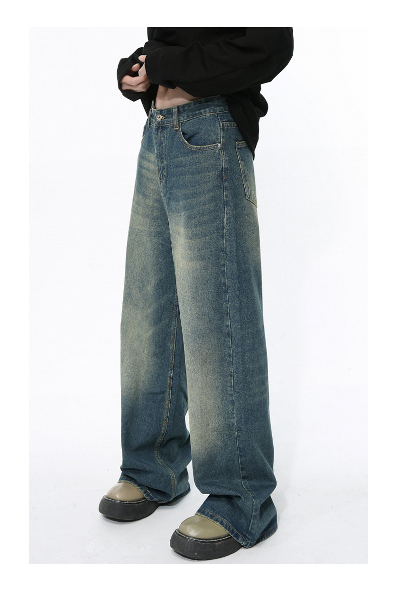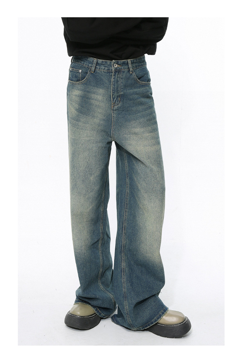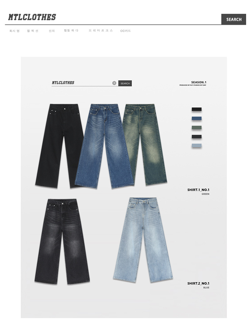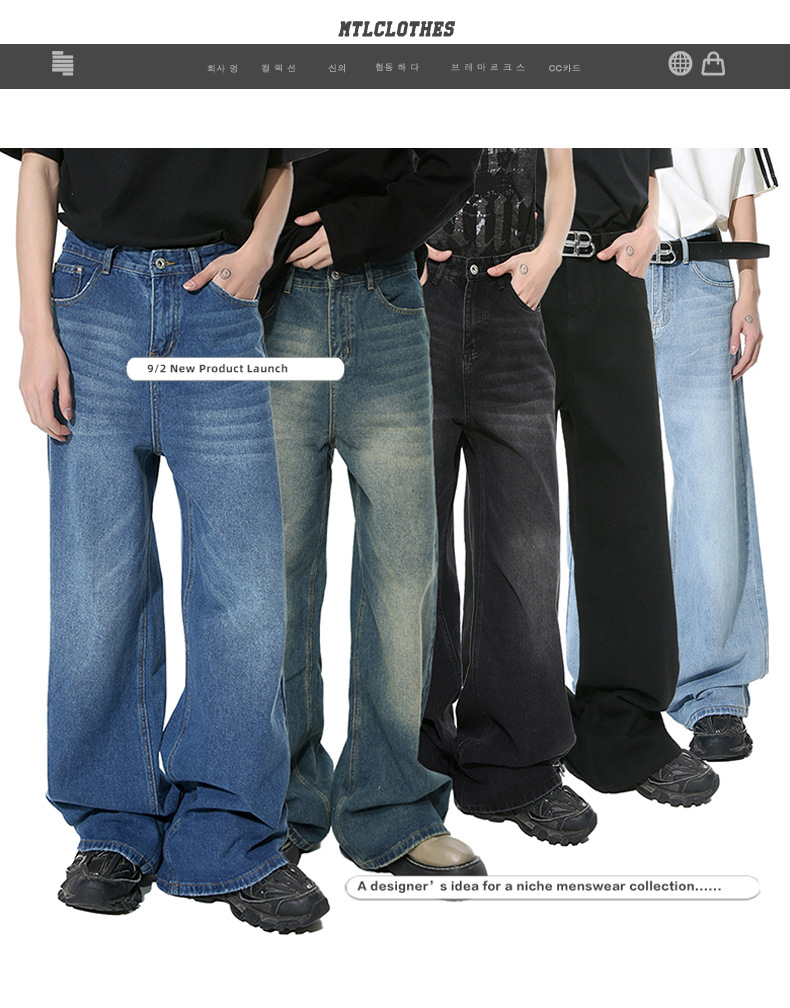 MTLCLOTHES 남성복 | 미국 레트로 스타일 워싱 처리된 심플한 일자핏 드레이프 데님 팬츠스토어 가기