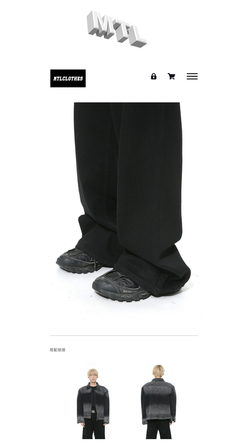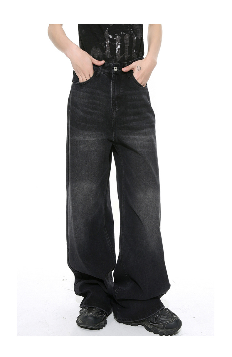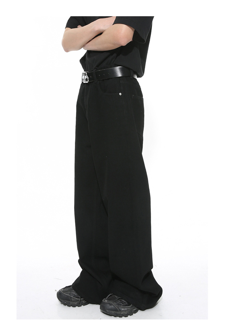 MTLCLOTHES 남성복 | 미국 레트로 스타일 워싱 처리된 심플한 일자핏 드레이프 데님 팬츠스토어 가기