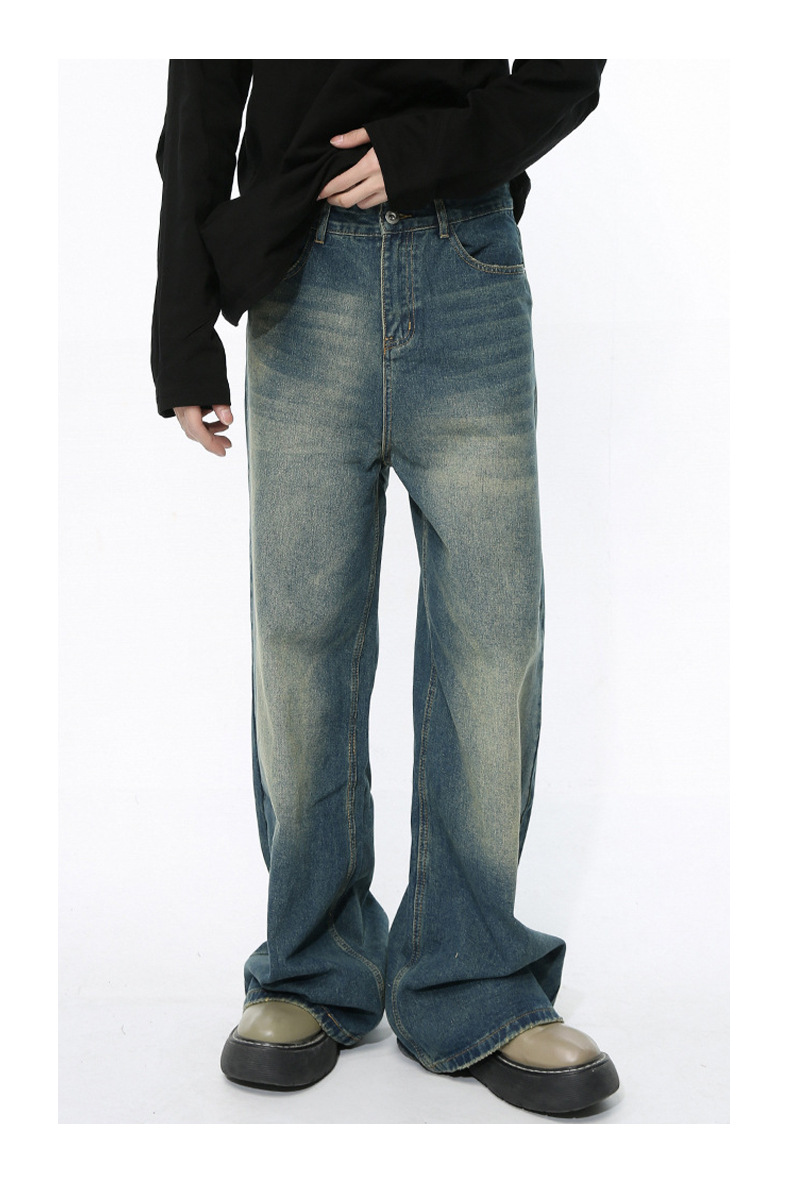 MTLCLOTHES 남성복 | 미국 레트로 스타일 워싱 처리된 심플한 일자핏 드레이프 데님 팬츠