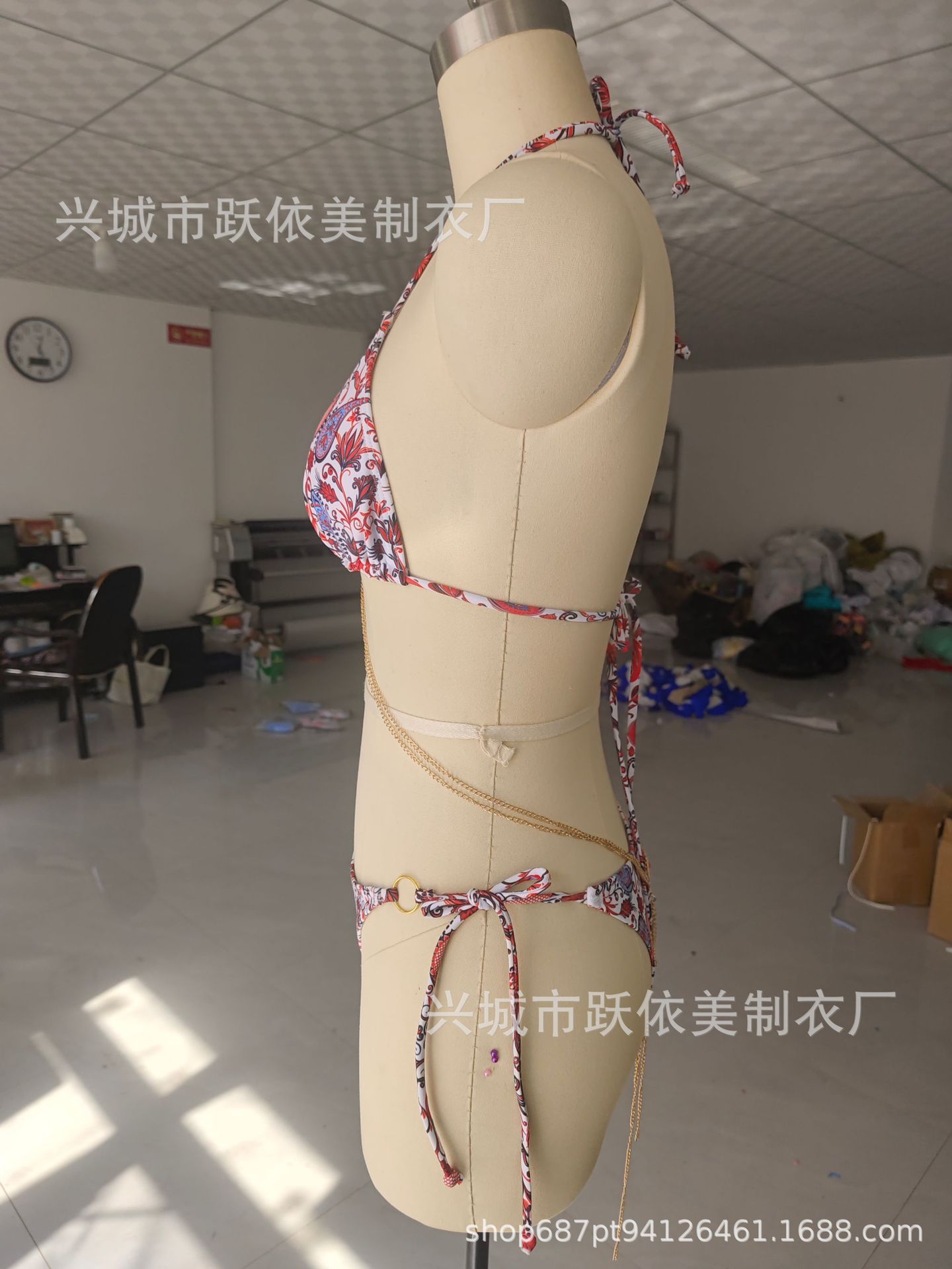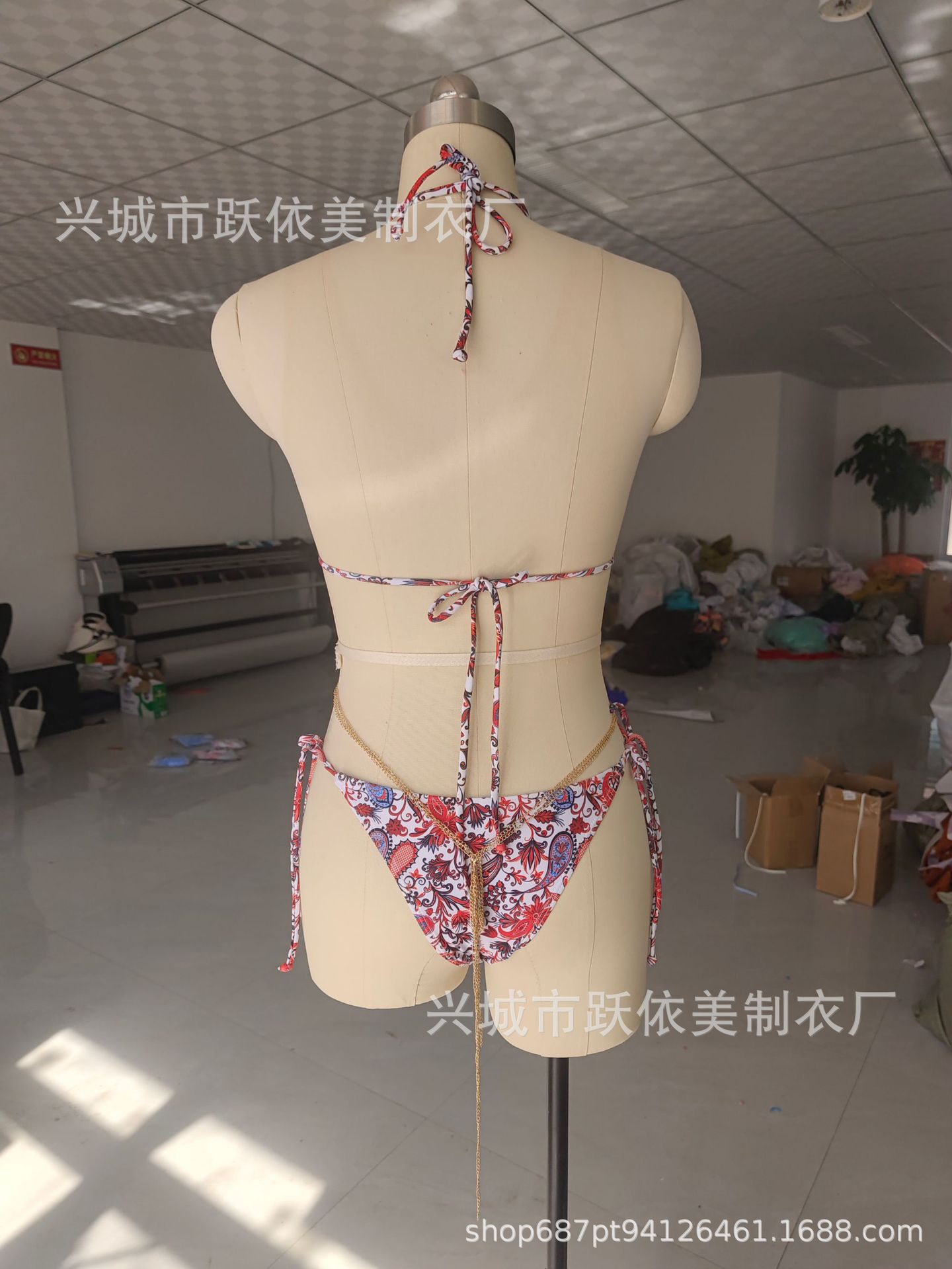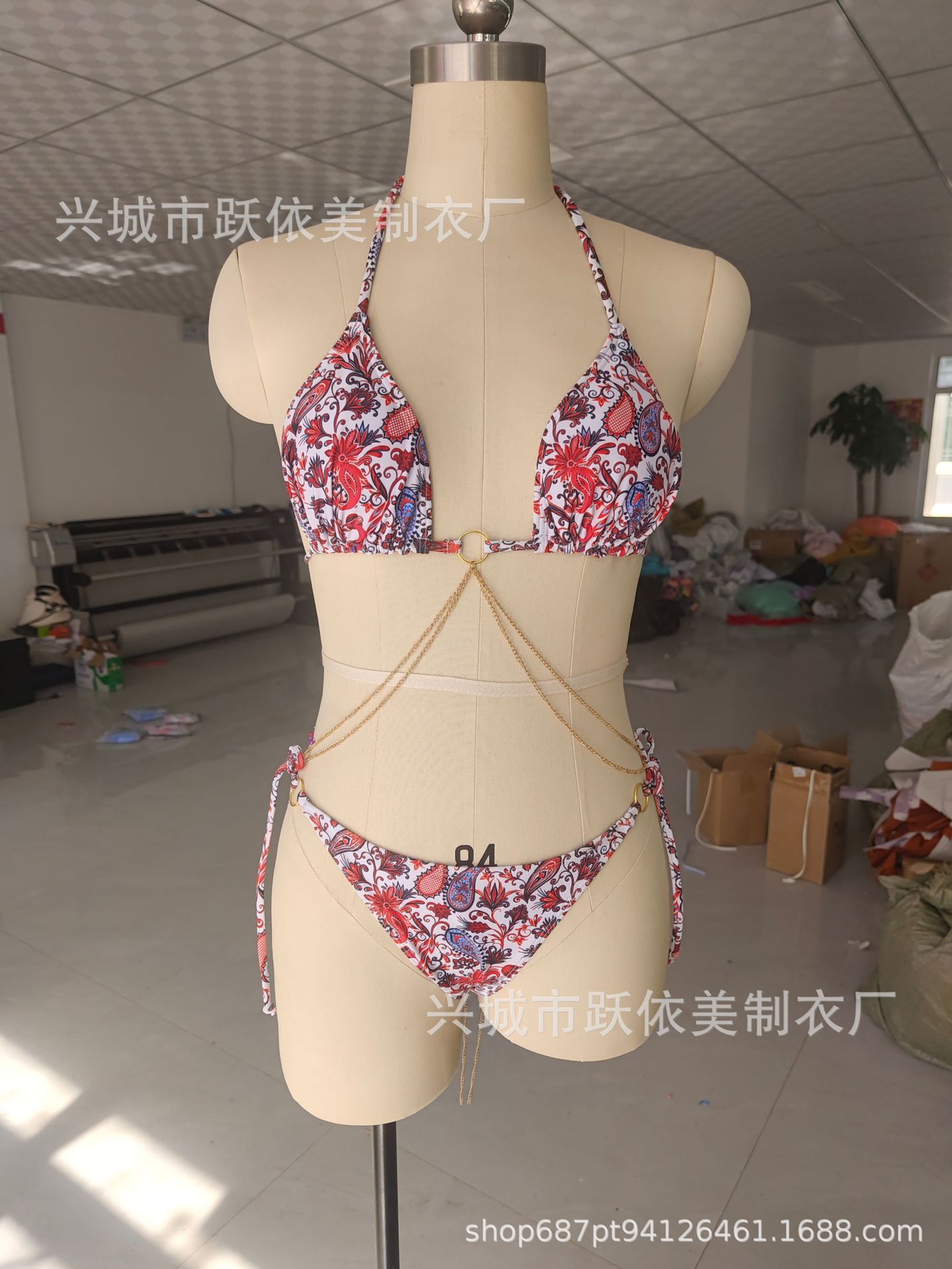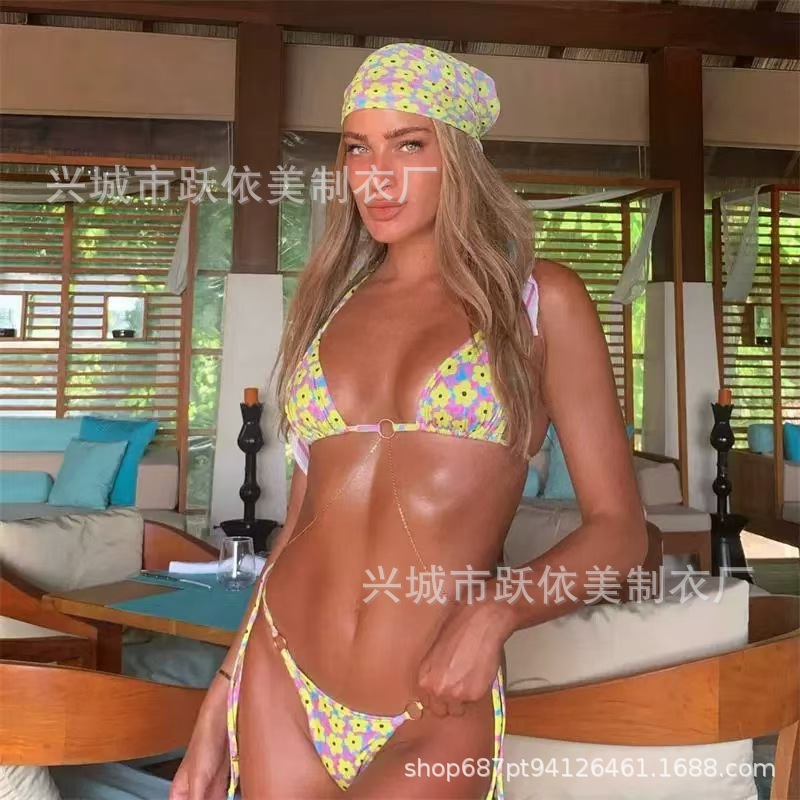 2024 유럽 및 미국 신상 섹시 프린트 백리스 플로럴 3피스 수영복 레이스업 3링 비키니스토어 가기