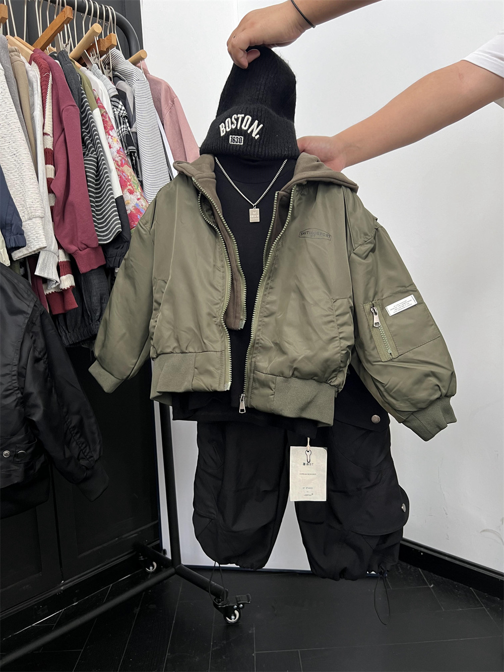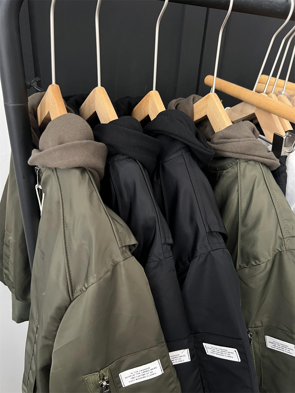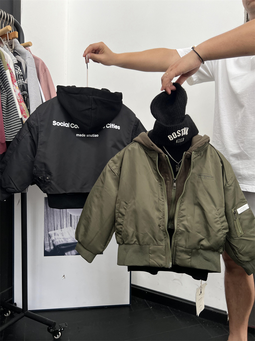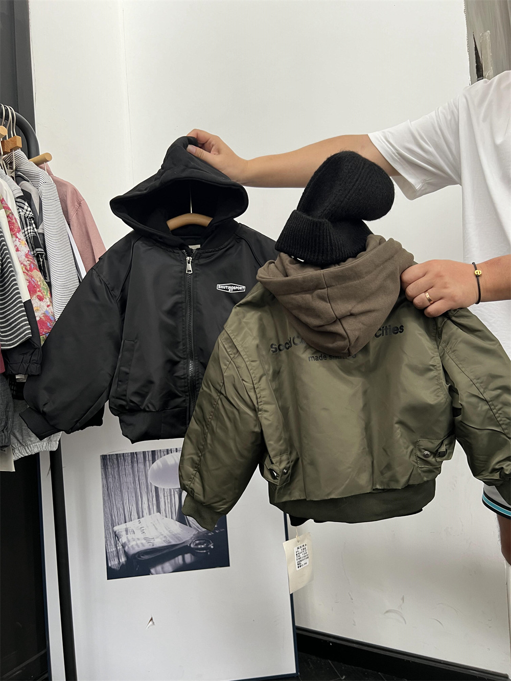 가을과 겨울 어린이 미국 가짜 투피스 비행기 세트 소년의 후드 자켓 잘 생긴 비행사 재킷 야구 재킷스토어 가기