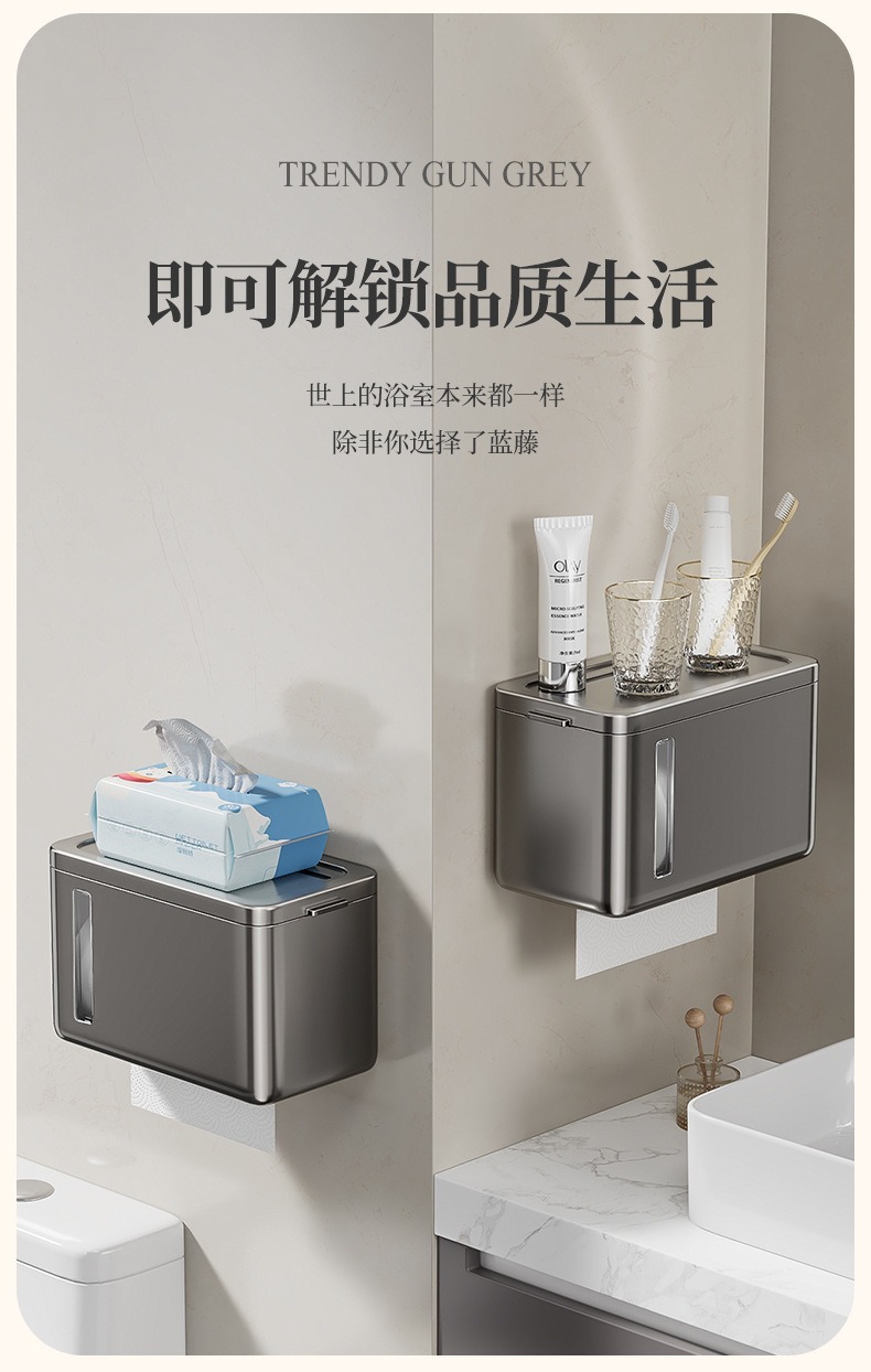 블루 등나무 화장실 티슈 박스 펀치 프리 라이트 럭셔리 스토리지 랙 욕실 방수 롤 종이 상자 벽 화장실 보관