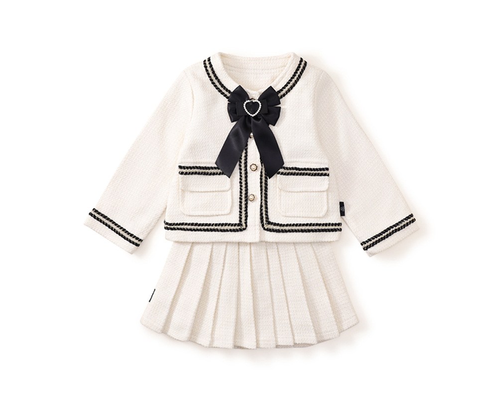 MDD 소녀 샤넬 스타일 세트 2024 새로운 가을과 겨울 서양 스타일 투피스 플리츠 치마 대학 스타일 생일 치마