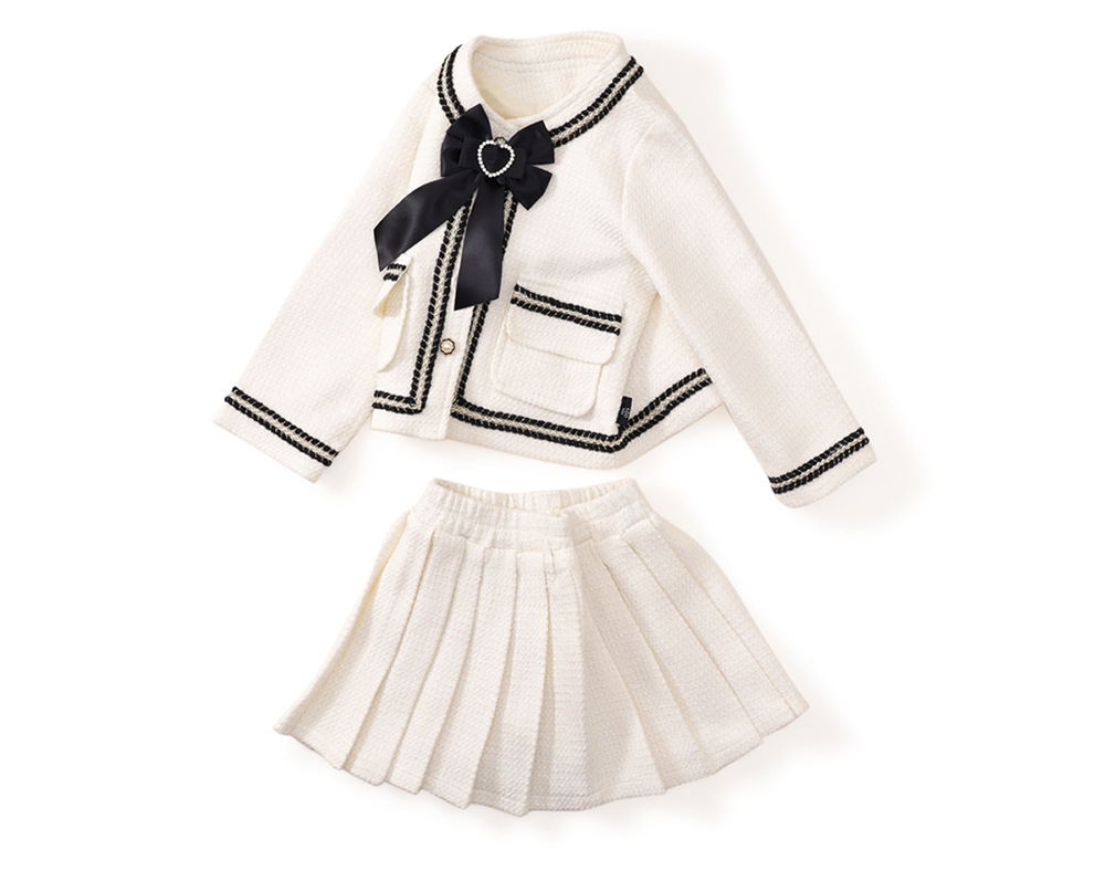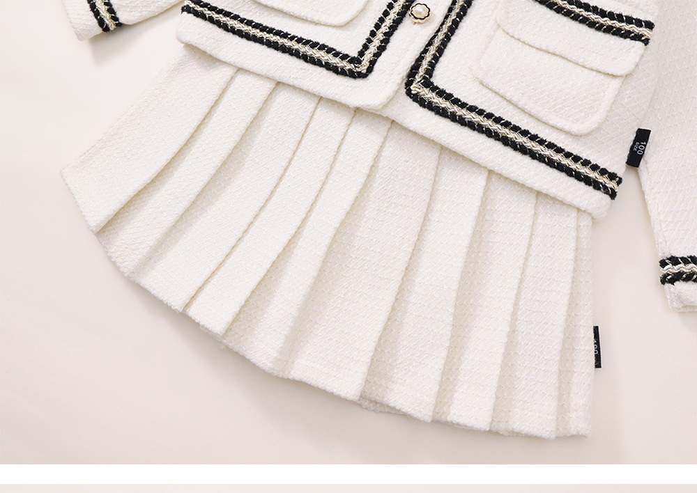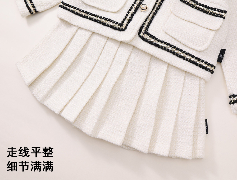 MDD 소녀 샤넬 스타일 세트 2024 새로운 가을과 겨울 서양 스타일 투피스 플리츠 치마 대학 스타일 생일 치마스토어 가기