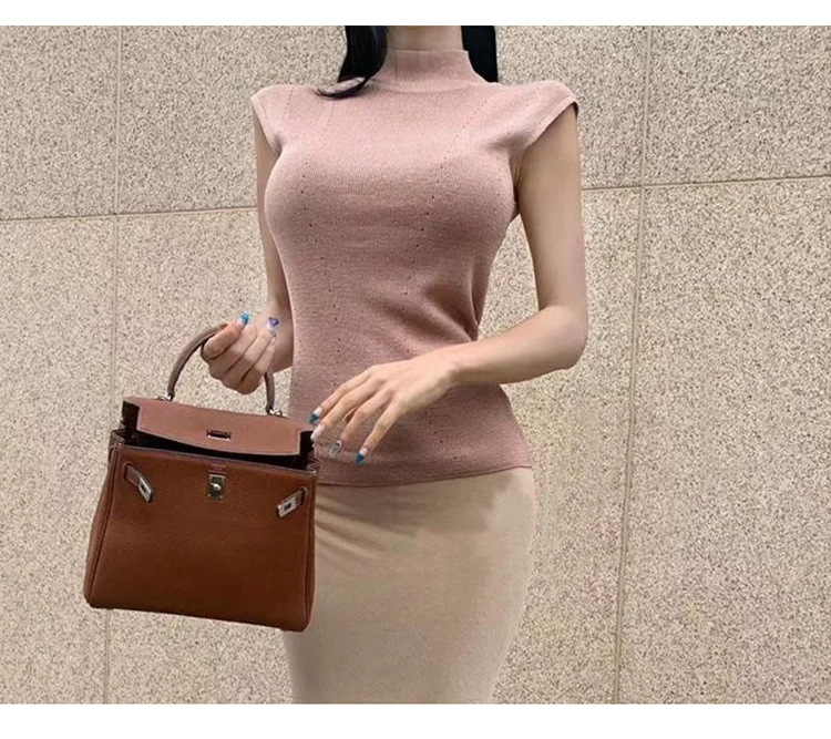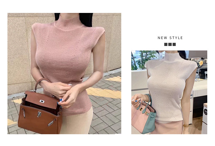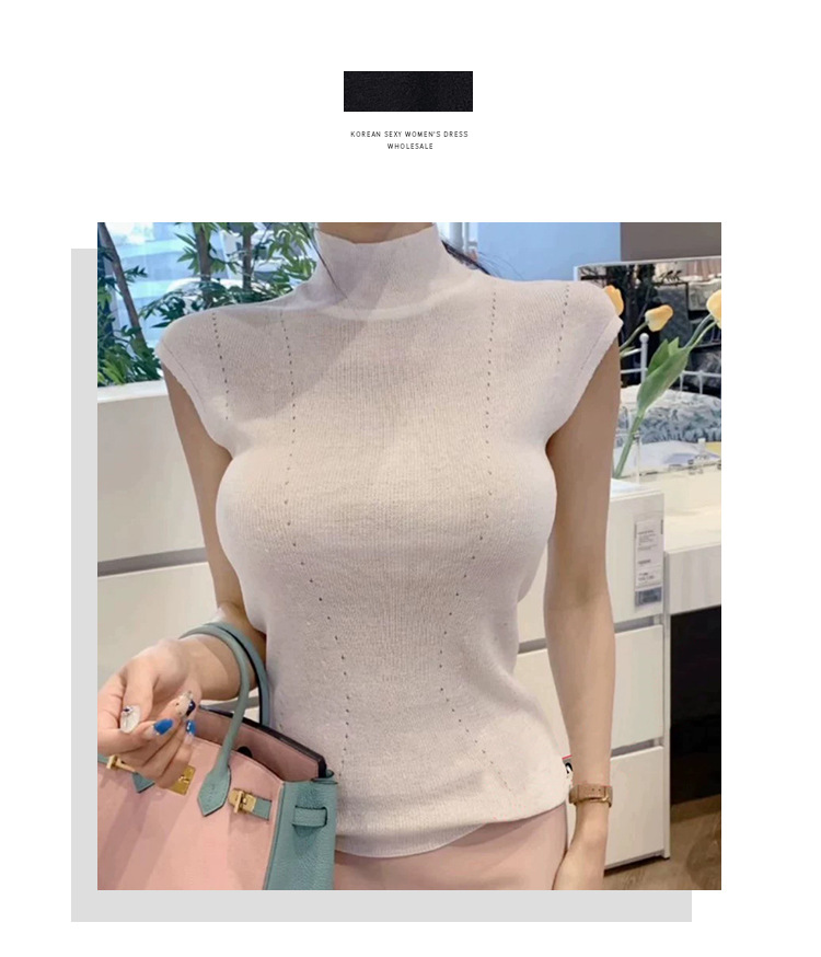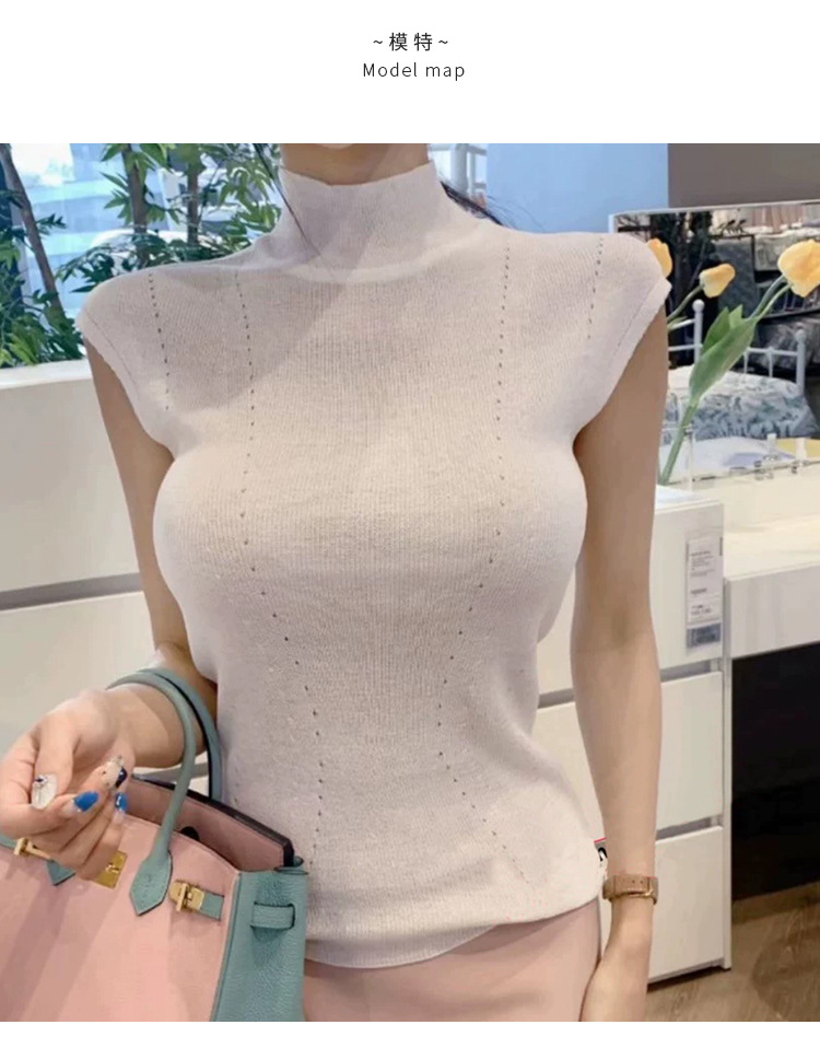 한국 동대문 꽉 슬림 섹시한 여성 반터틀넥 피규어 민소매 스웨터 얇은 베이스 셔츠스토어 가기