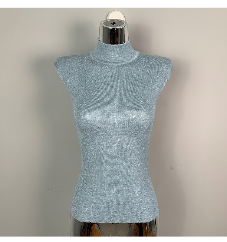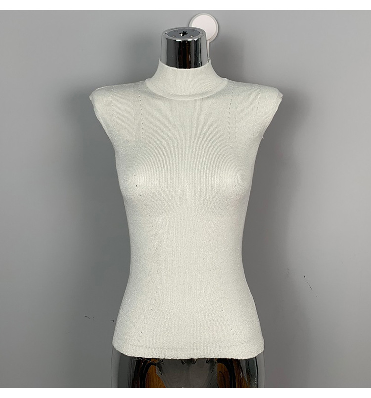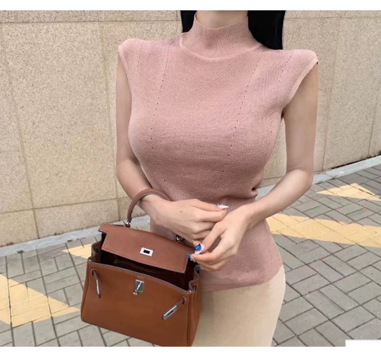 한국 동대문 꽉 슬림 섹시한 여성 반터틀넥 피규어 민소매 스웨터 얇은 베이스 셔츠
