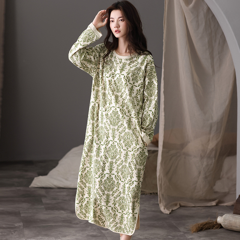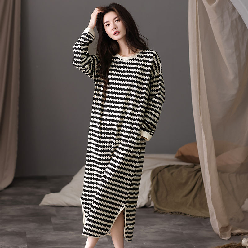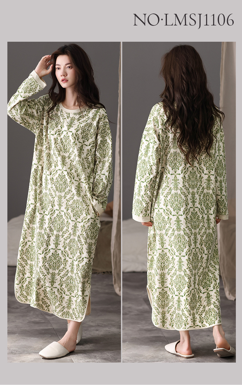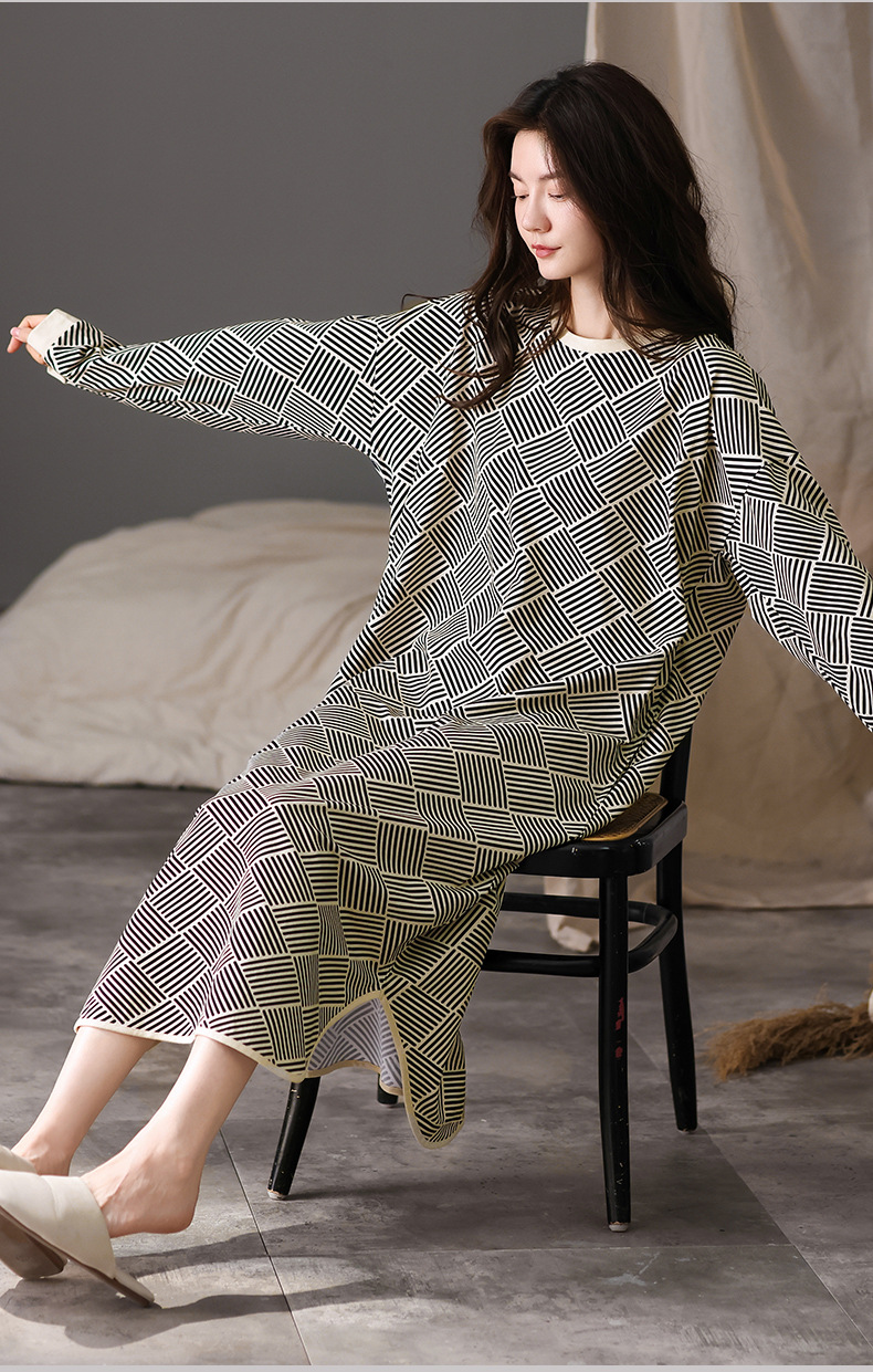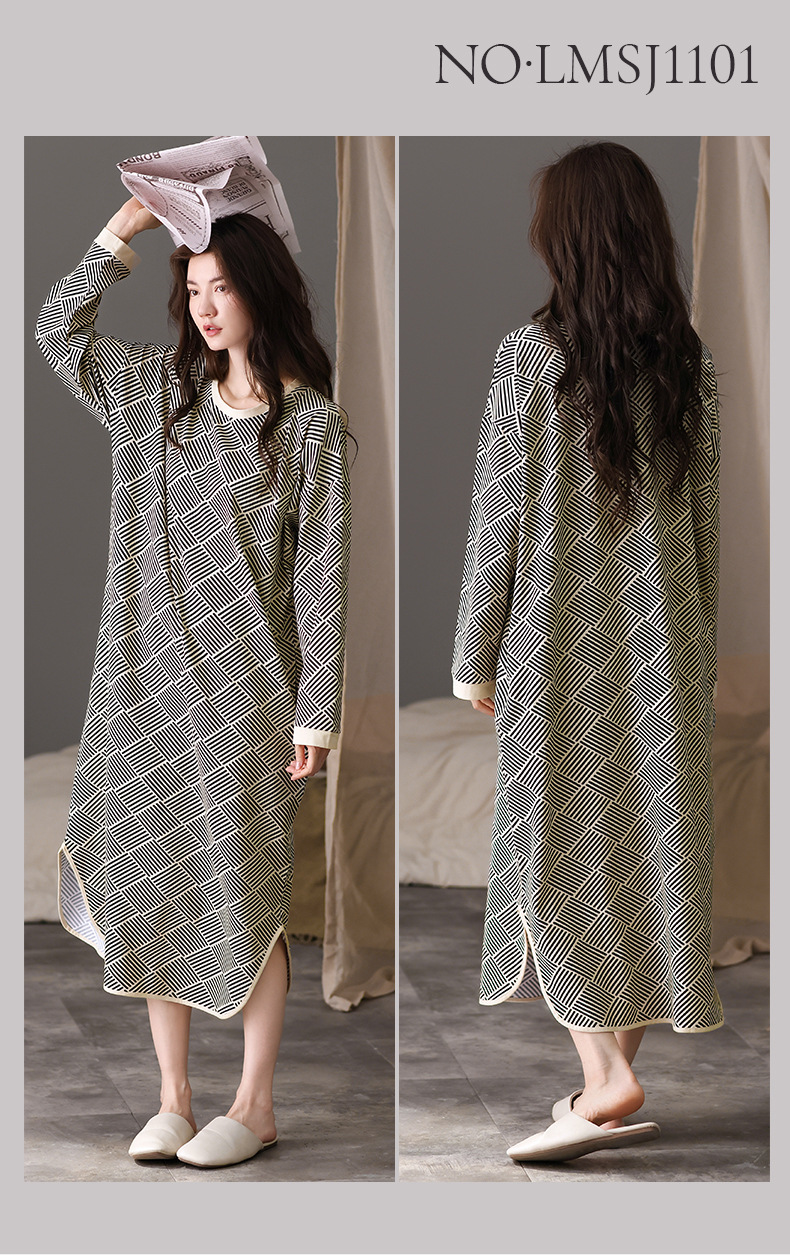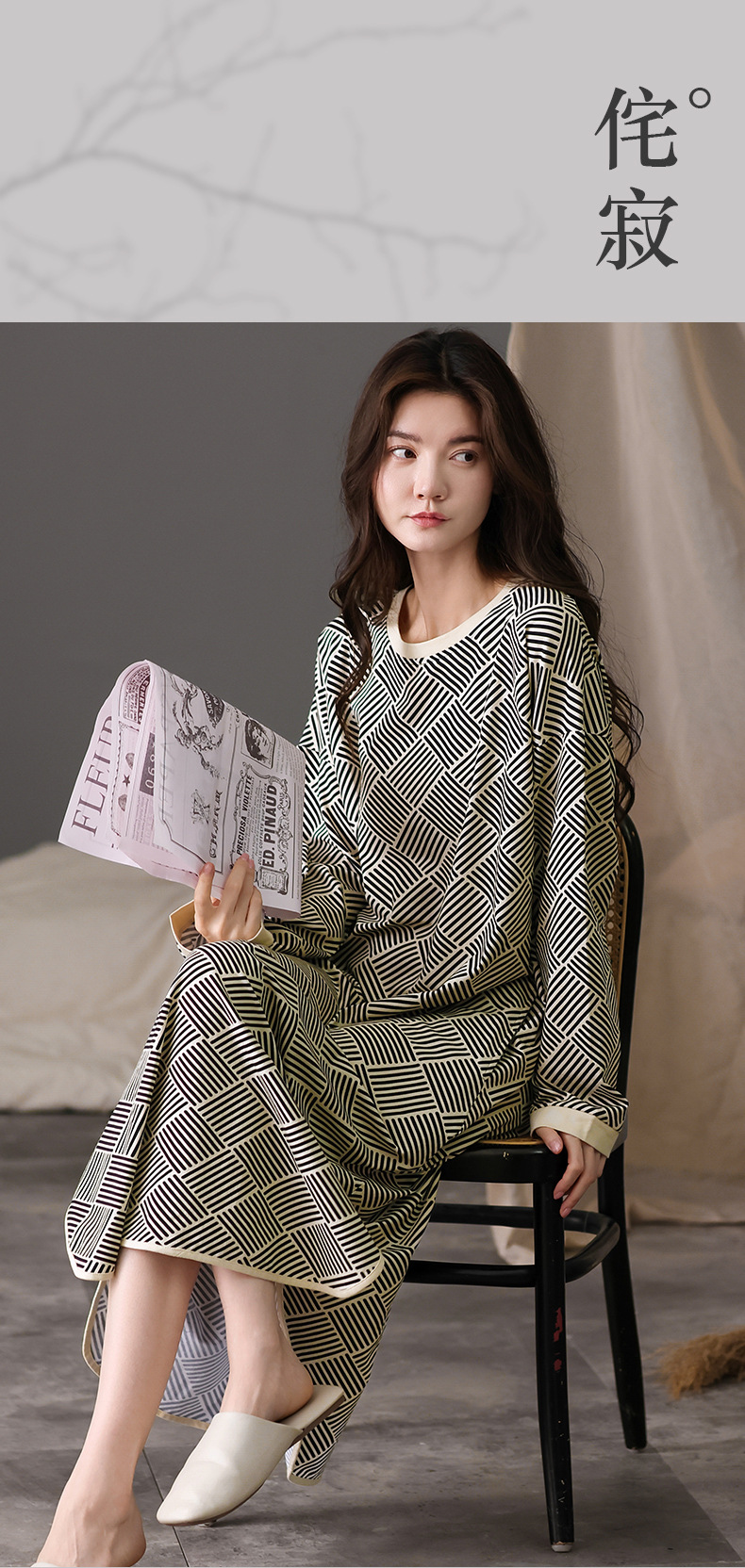 2024 새로운 스타일 잠옷 여성 봄 가을 순면 긴 소매 홈 패션 아웃웨어 파자마 여성용 원피스