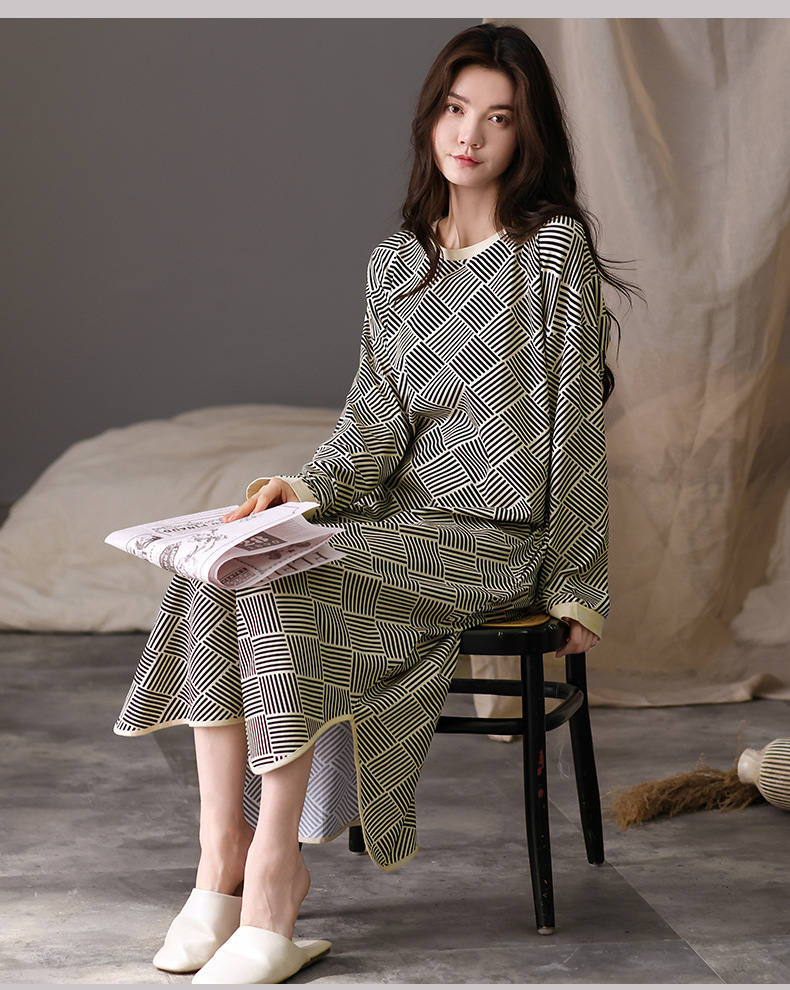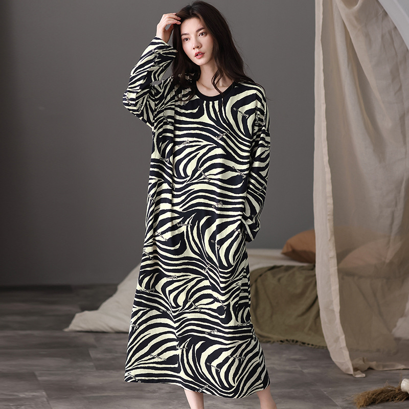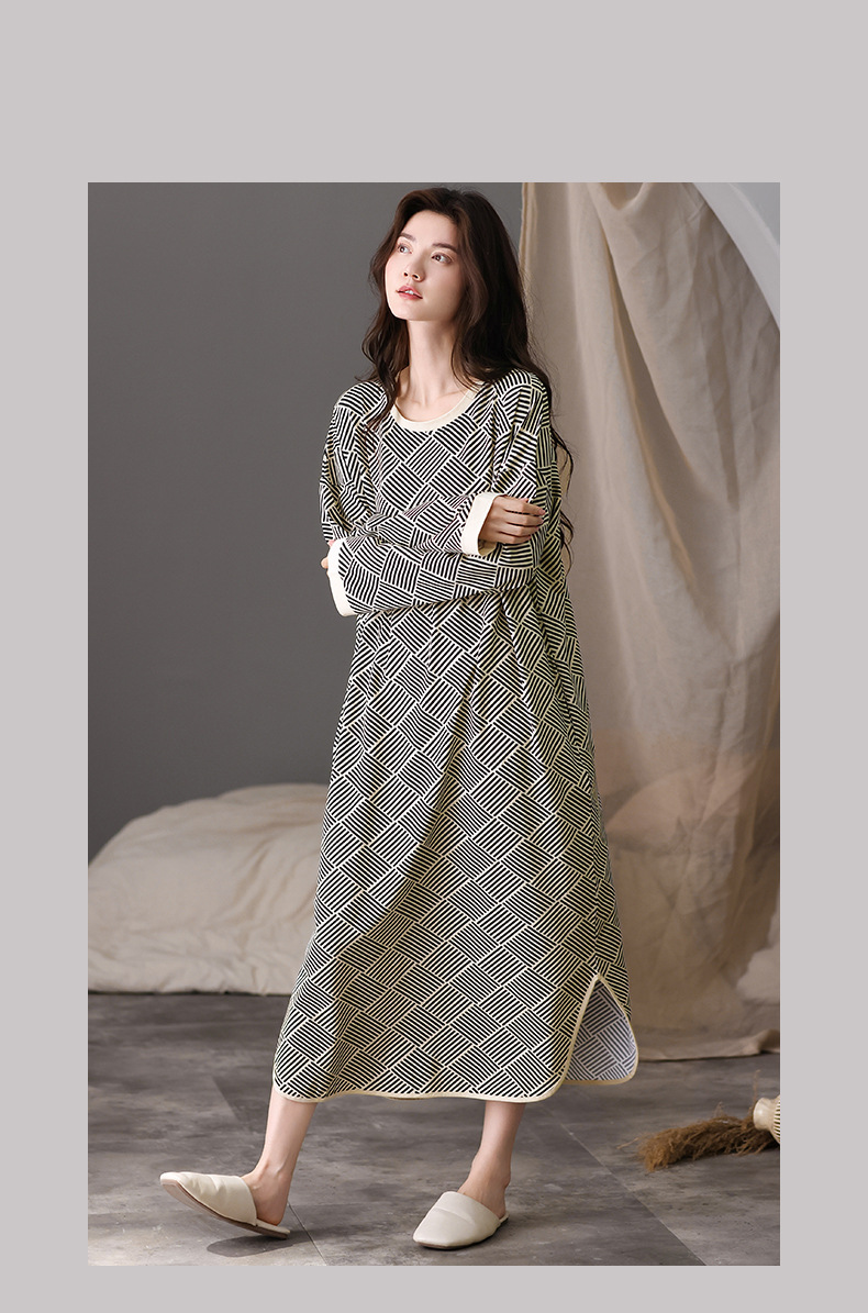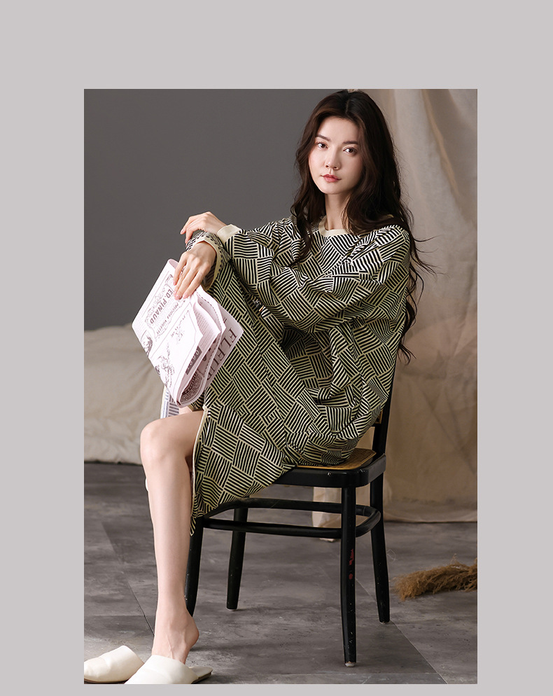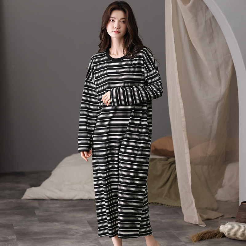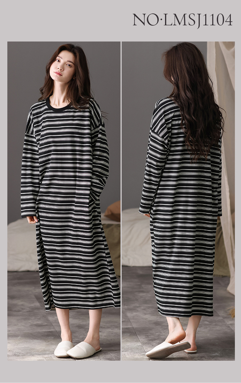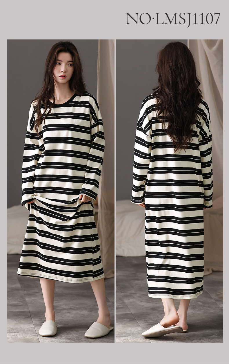 2024 새로운 스타일 잠옷 여성 봄 가을 순면 긴 소매 홈 패션 아웃웨어 파자마 여성용 원피스