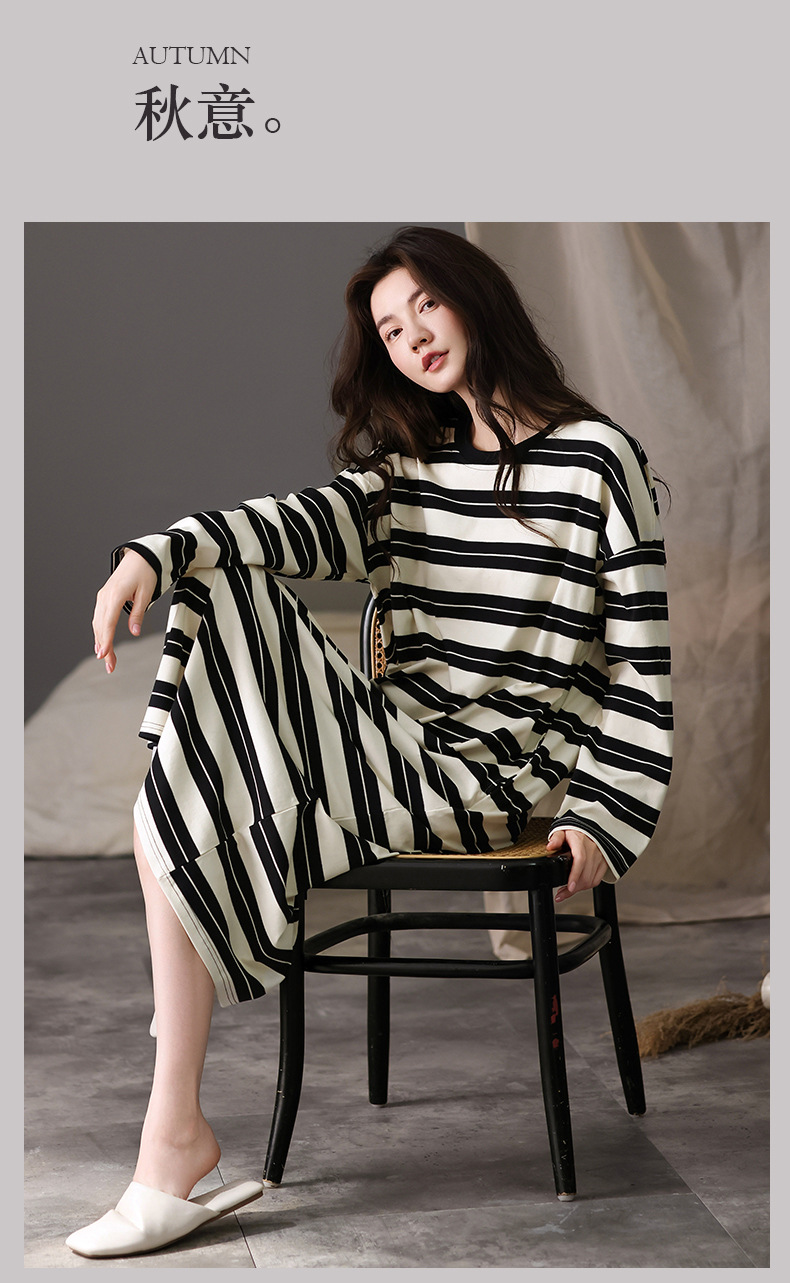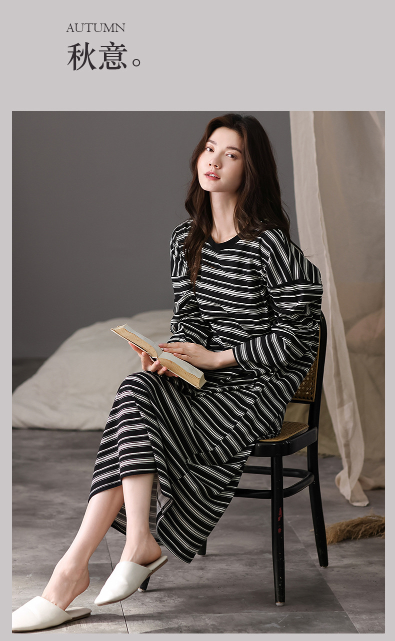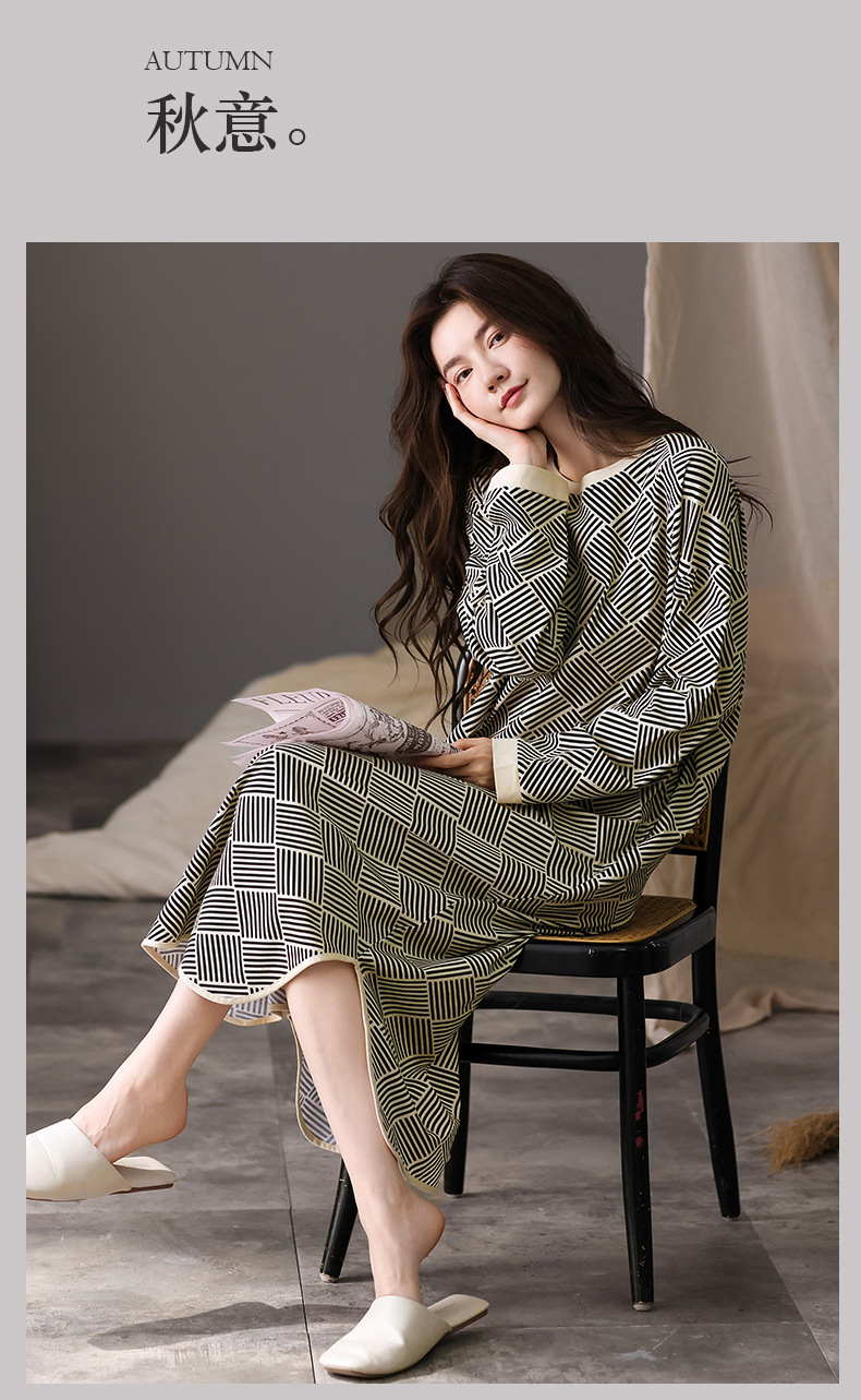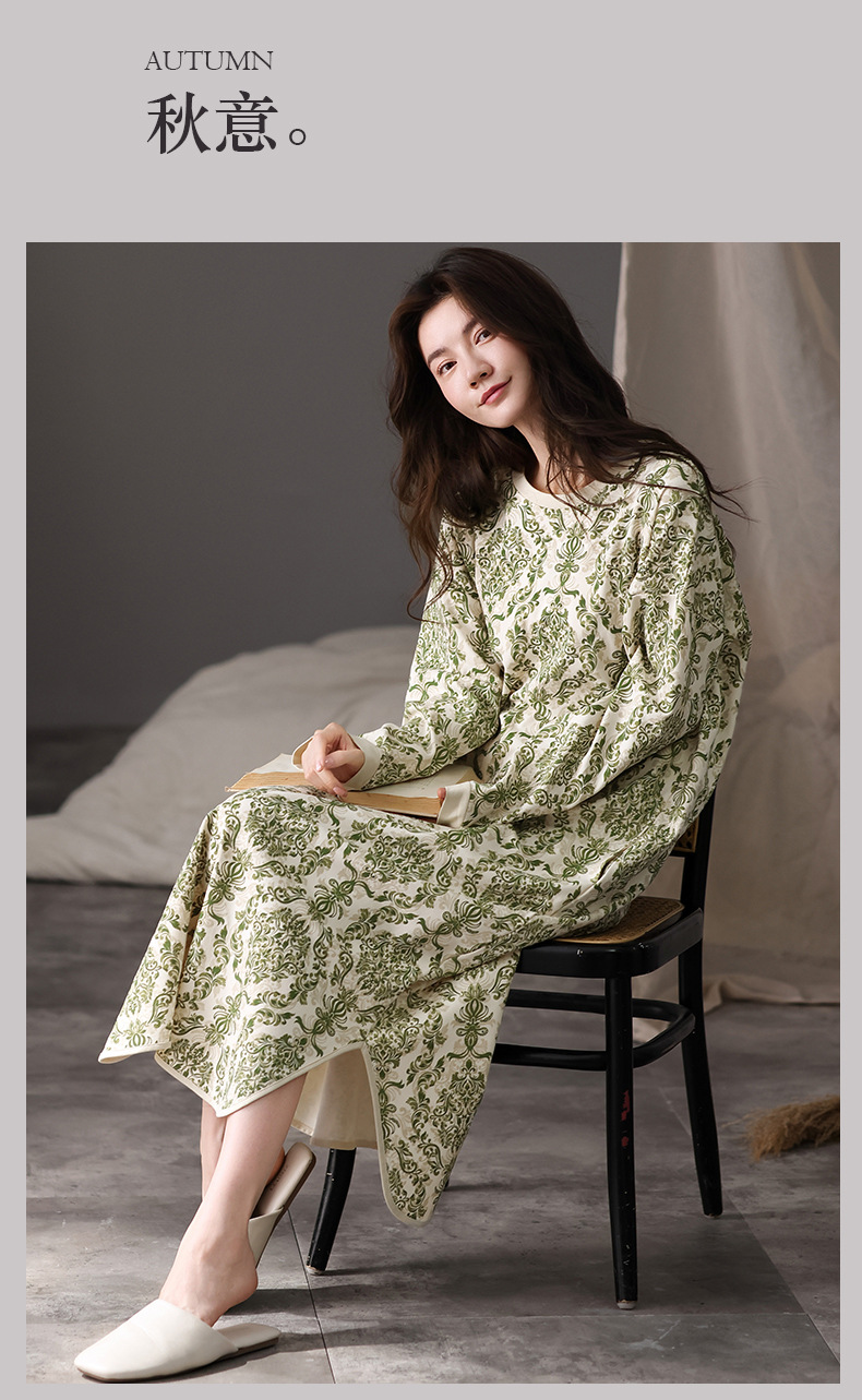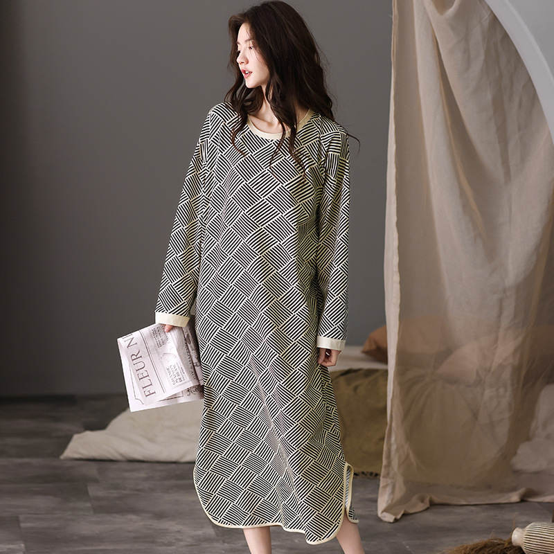 2024 새로운 스타일 잠옷 여성 봄 가을 순면 긴 소매 홈 패션 아웃웨어 파자마 여성용 원피스스토어 가기