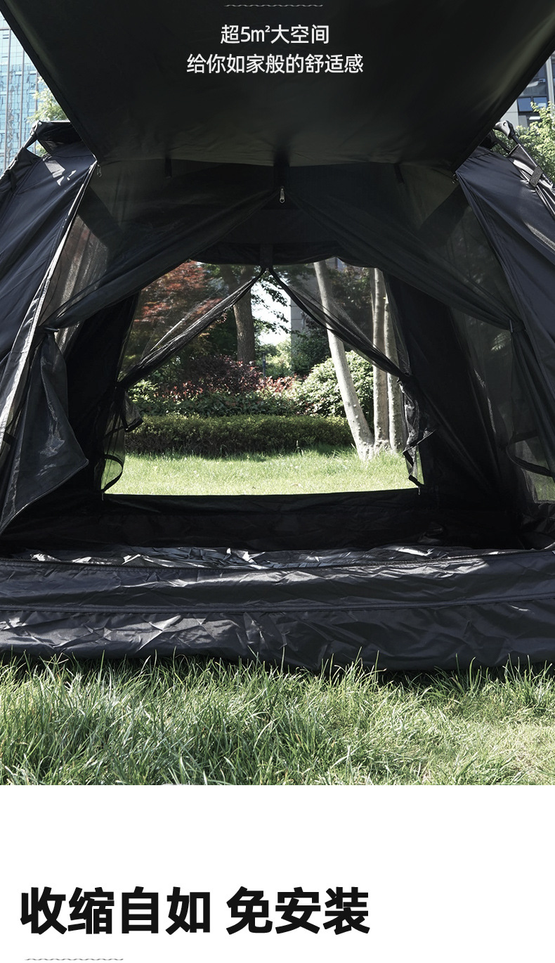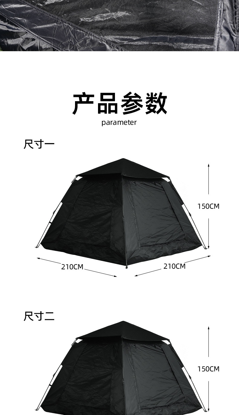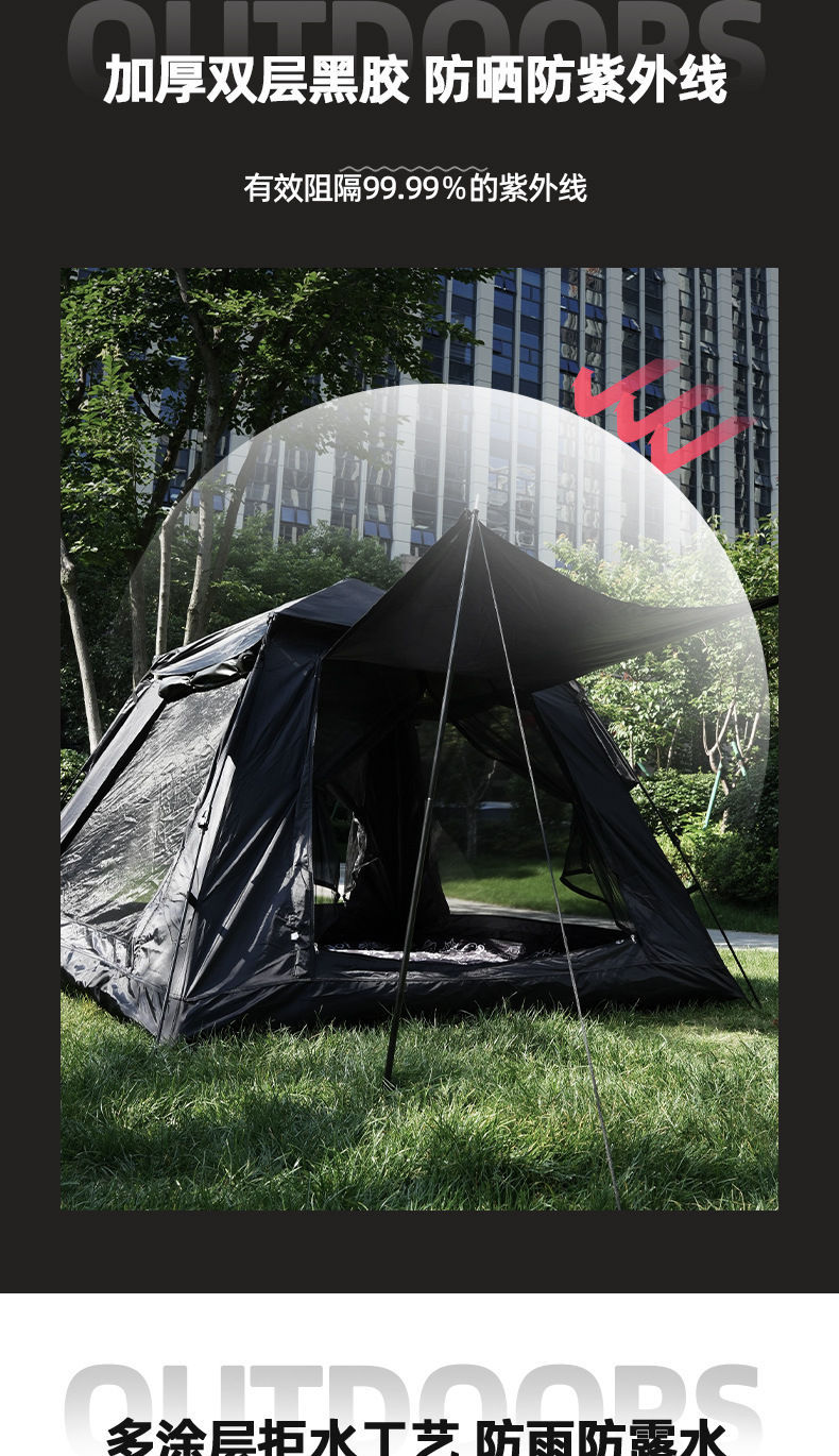 재고 도매 야외 캠핑 빠른 접이식 검은 비닐 텐트 두껍게 썬 스크린 및 방비 4 면 작은 모자 텐트
