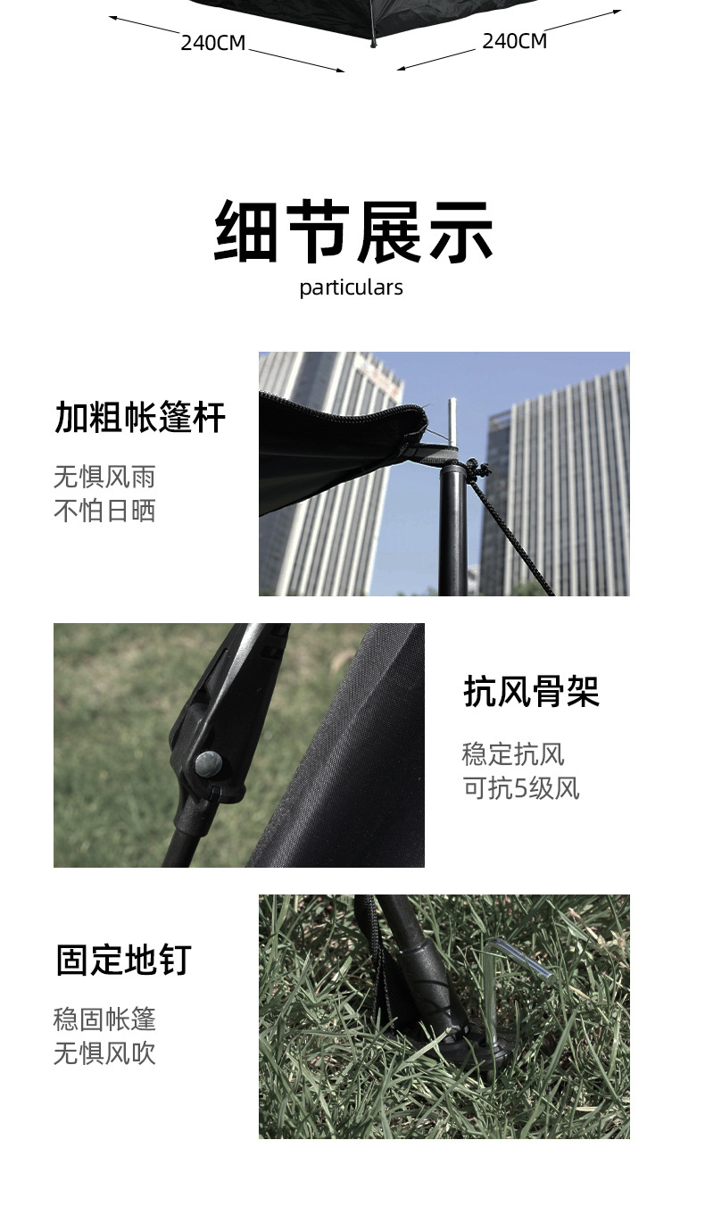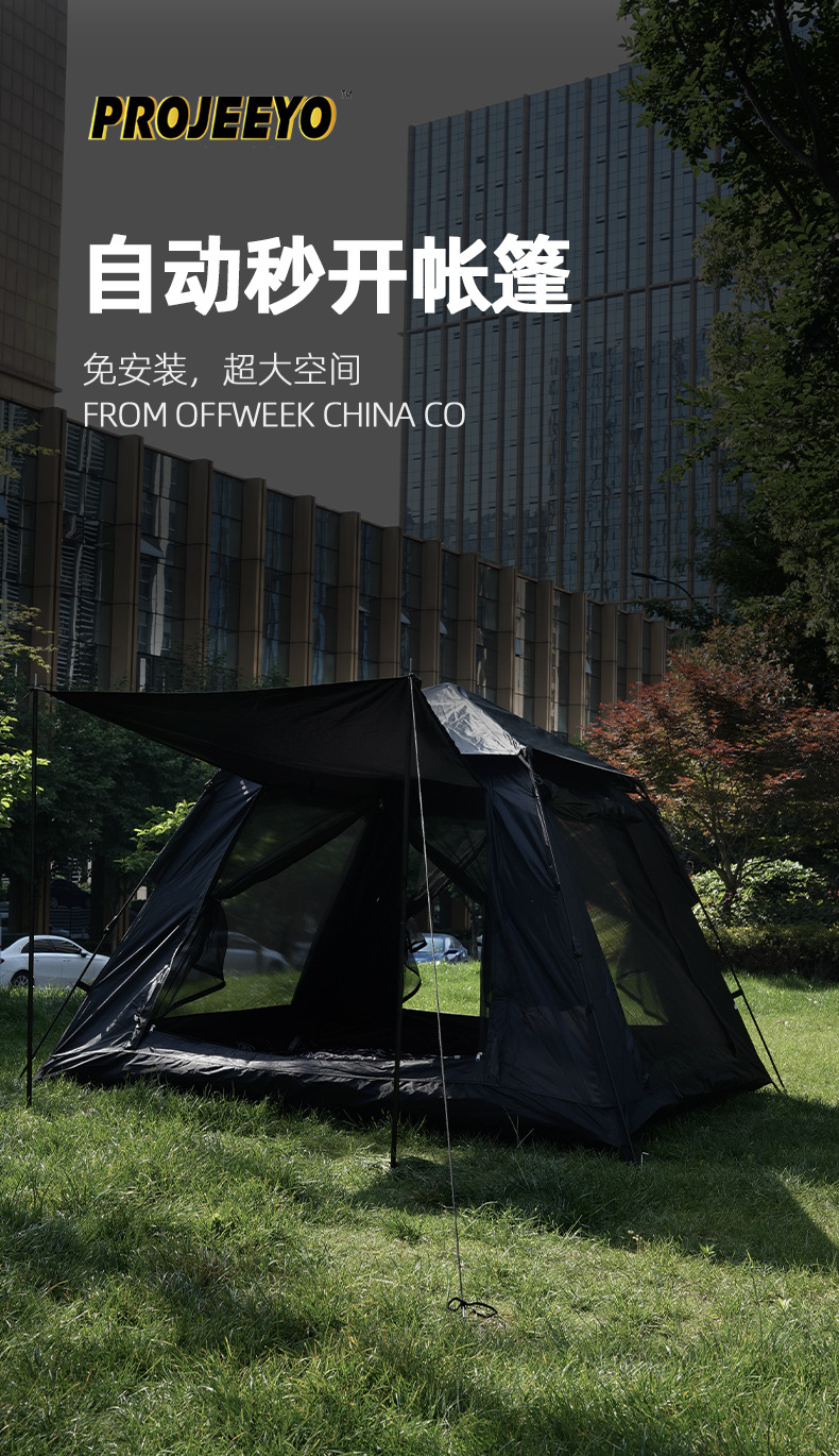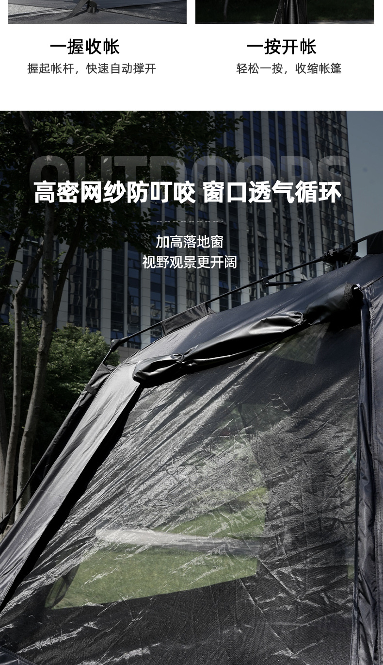 재고 도매 야외 캠핑 빠른 접이식 검은 비닐 텐트 두껍게 썬 스크린 및 방비 4 면 작은 모자 텐트